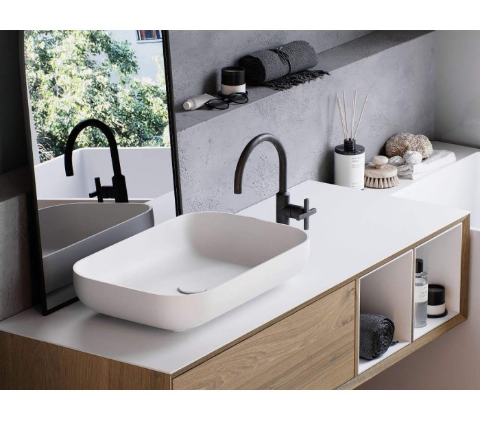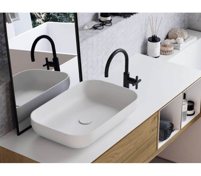 Juna bordmonteret håndvask 58 x 38 cm i senstone - Mat hvid