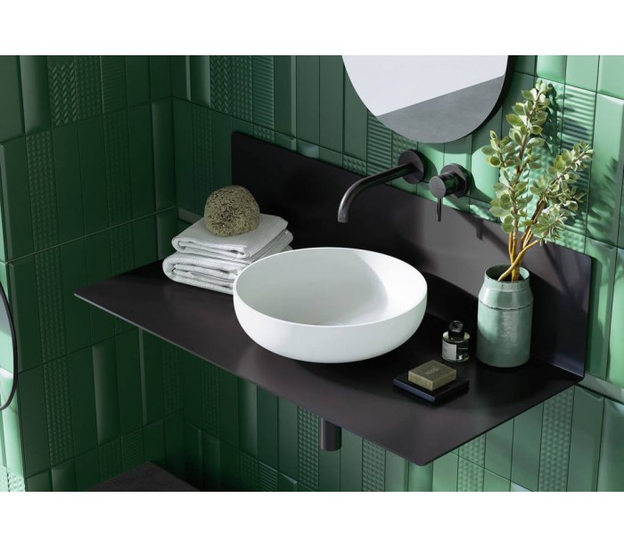 Håndvask i et design fremstillet i det solide materiale "Senstone", der ikke alene giver badeværelset et stilrent design, men samtidig er lækkert at røre ved. Håndvasken måler 38 cm i diameter (ydermål). Leveres med pop-up bundventil med cover.
