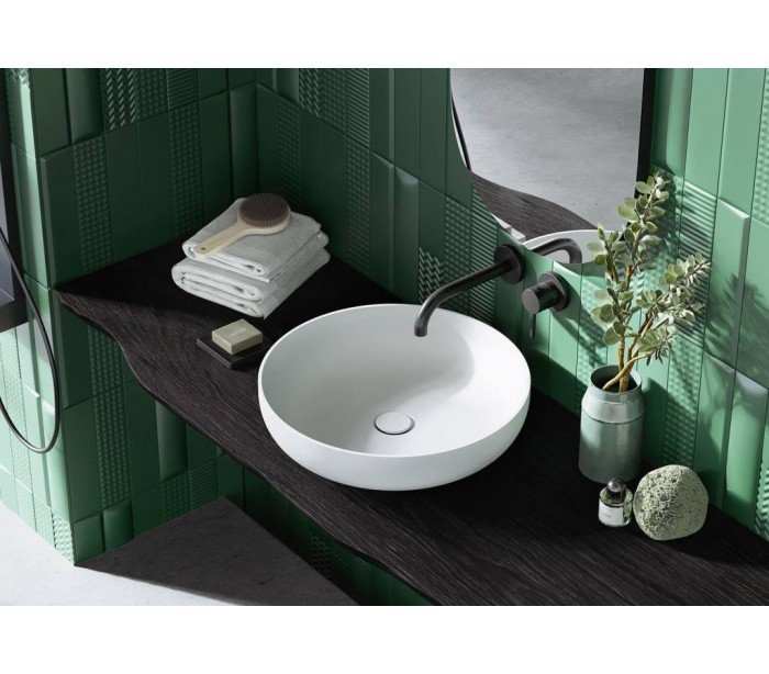 Lima bordmonteret håndvask Ø46 cm i senstone - Mat hvid