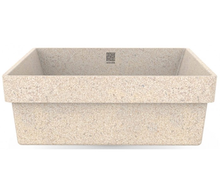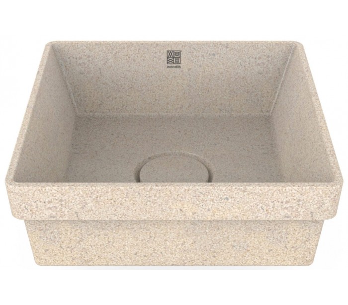 Woodio Cube40 nedfældet håndvask fremstillet i bæredygtige materialer fra de Finske skove (80% ren træ/20% resin) og udført i en blød form, der gør håndvasken meget behageligt at røre ved. Efter montering måler vaskens højde over bordplade 5 cm. Cover til bundventilen medfølger for et komplet udtryk.