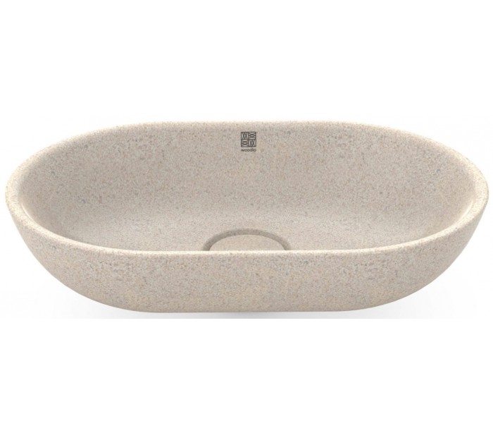Woodio Soft60 håndvask fremstillet i bæredygtige materialer fra de Finske skove (80% ren træ/20% resin) og udført i en blød form, der gør håndvasken meget behageligt at røre ved. Cover til bundventilen medfølger for et komplet udtryk.