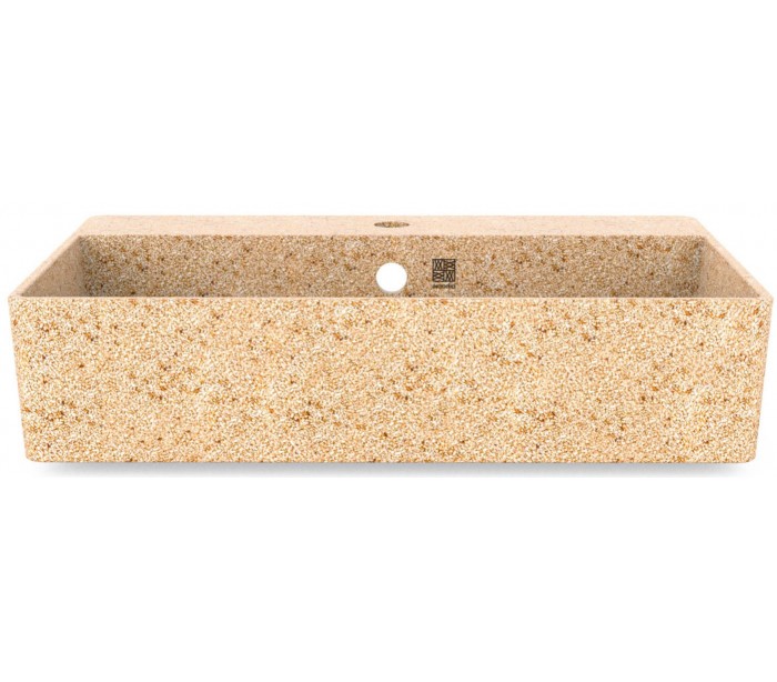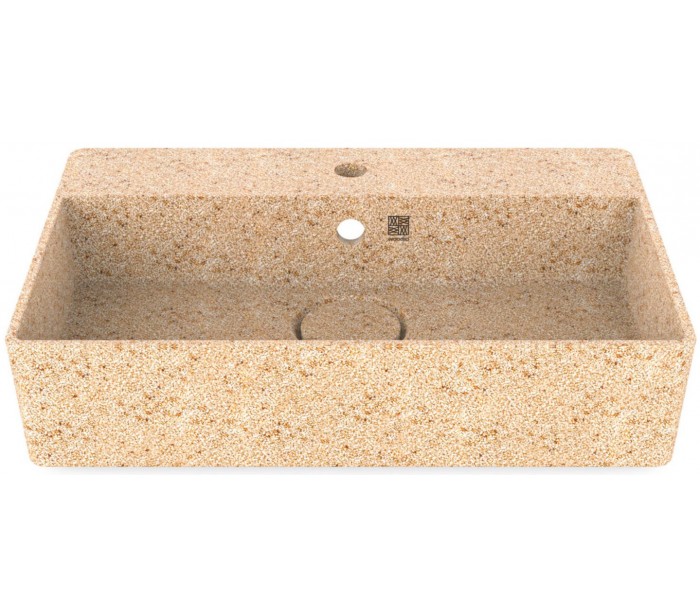 Woodio Cube60 vægmonteret håndvask fremstillet i bæredygtige materialer fra de Finske skove (80% ren træ/20% resin) og udført i en blød form, der gør håndvasken meget behageligt at røre ved. Cover til bundventilen medfølger for et komplet udtryk. Vægbeslag medfølger.