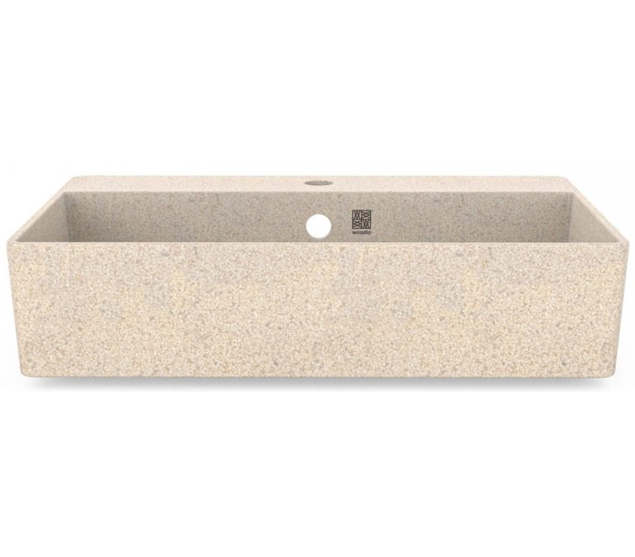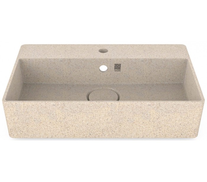 Woodio Cube60 vægmonteret håndvask fremstillet i bæredygtige materialer fra de Finske skove (80% ren træ/20% resin) og udført i en blød form, der gør håndvasken meget behageligt at røre ved. Cover til bundventilen medfølger for et komplet udtryk. Vægbeslag medfølger.