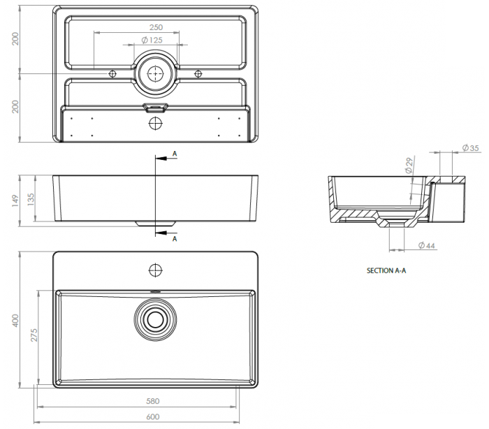 Woodio vægmonteret håndvask 60 x 40 cm ECO - Stengrå