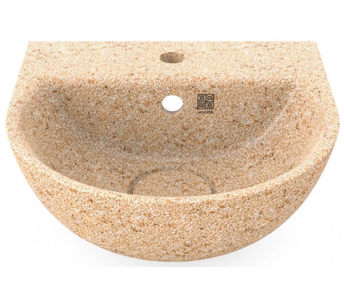 Woodio Cube40 vægmonteret håndvask fremstillet i bæredygtige materialer fra de Finske skove (80% ren træ/20% resin) og udført i en blød form, der gør håndvasken meget behageligt at røre ved. Cover til bundventilen medfølger for et komplet udtryk. Vægbeslag medfølger.