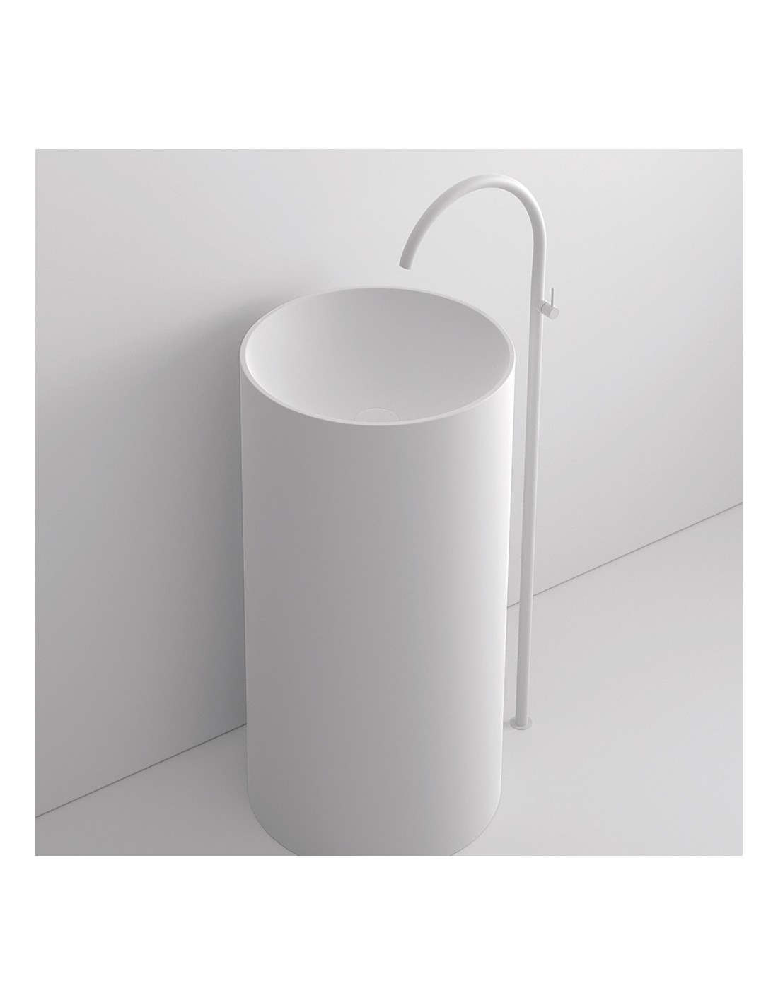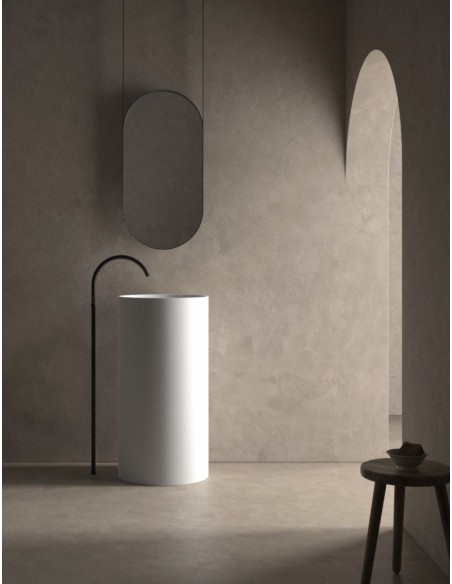 Spring gulvmonteret håndvask H87 x Ø44 cm Solid surface - Mat hvid