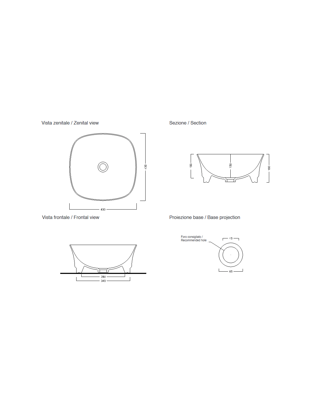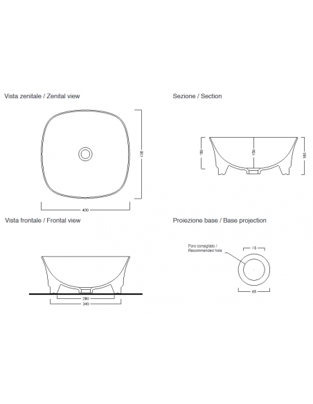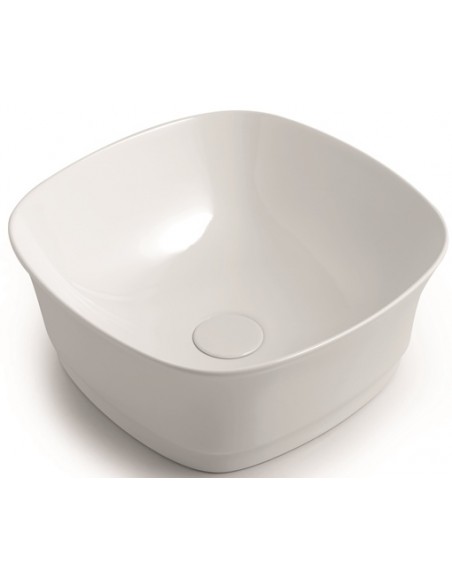 IDEA QUADRATO håndvask udført i et moderne design i keramik. Håndvasken måler 18 cm i højden og 43 x 43 cm i bredde og dybde (ydermål) og leveres med pop-up bundventil.