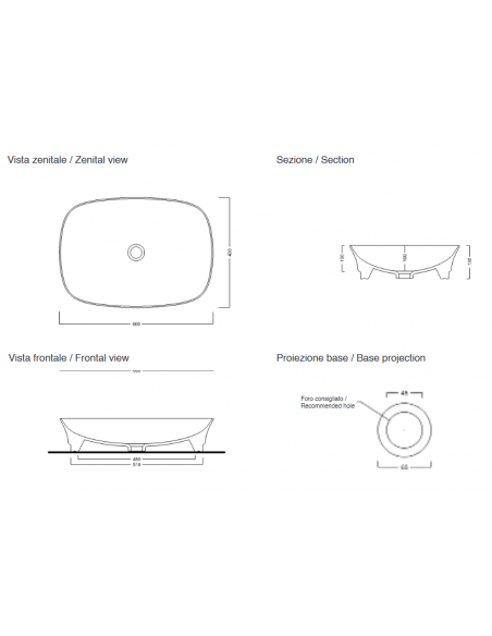 IDEA RETTANGOLARE Bordmonteret håndvask 60 x 43 cm Keramik - Blank hvid