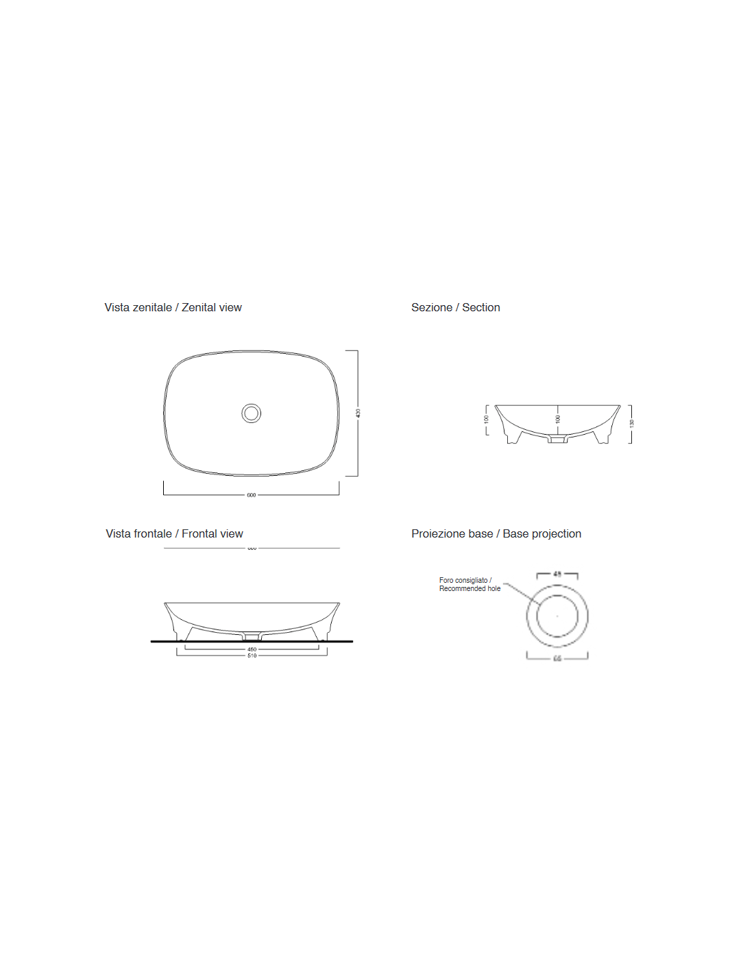 IDEA RETTANGOLARE håndvask udført i et moderne design i keramik. Håndvasken måler 13 cm i højden og 60 x 43 cm i bredde og dybde (ydermål) og leveres med pop-up bundventil.
