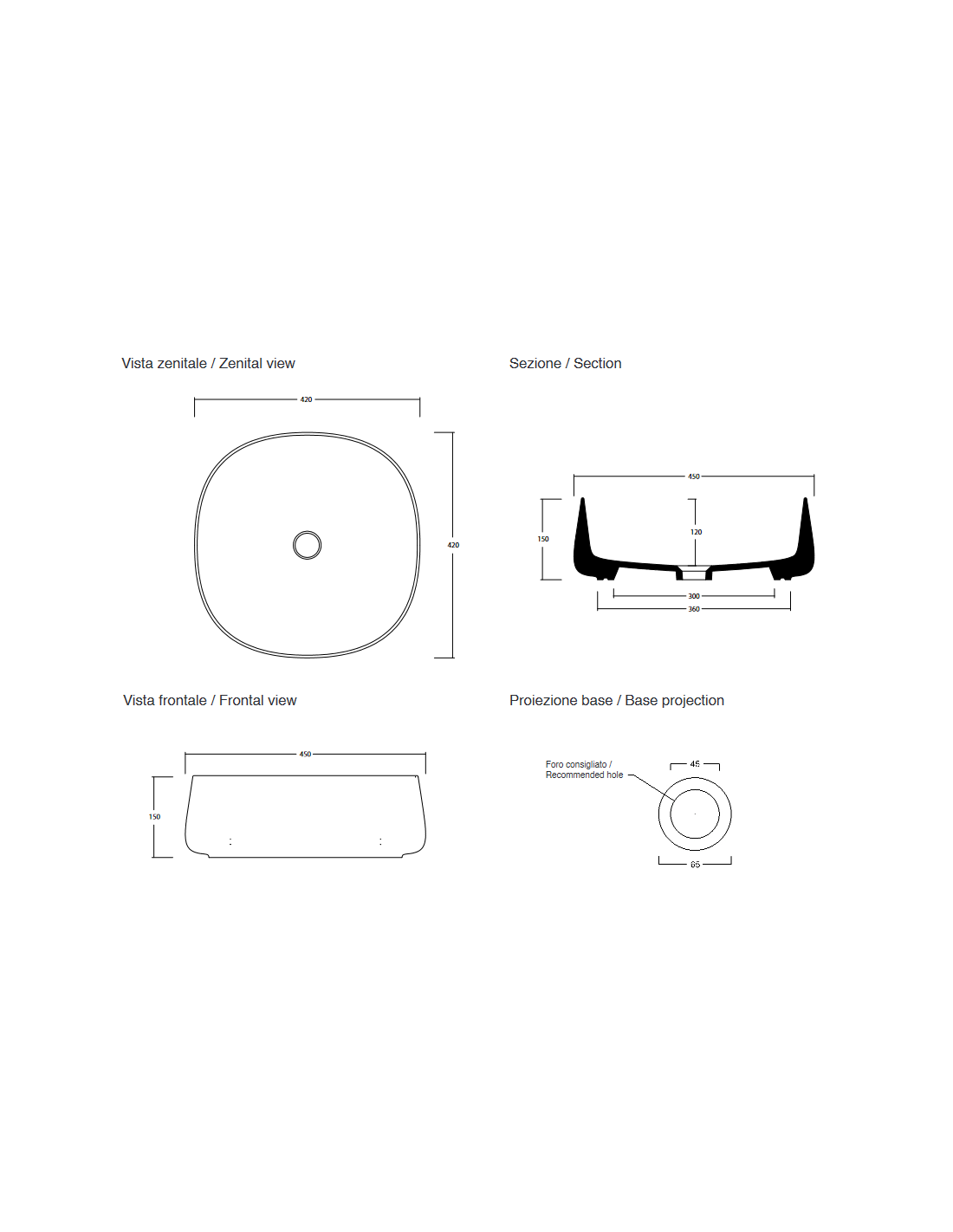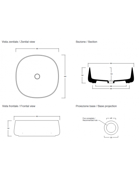 JUMPER 42 håndvask udført i et moderne design i keramik. Håndvasken måler 15 cm i højden og 42 x 42 cm i bredde og dybde (ydermål) og leveres med pop-up bundventil.