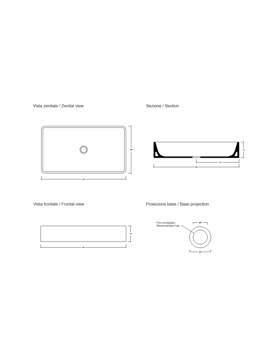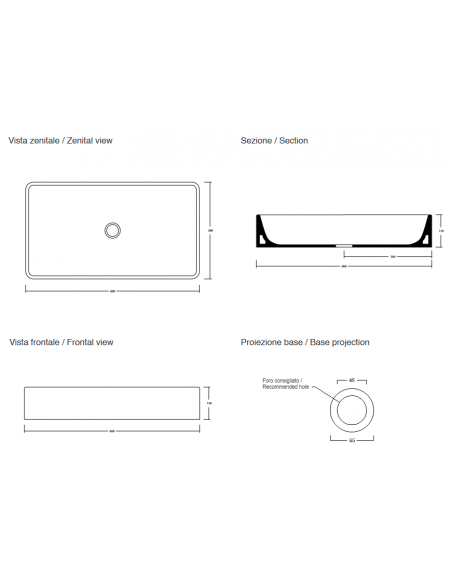 SLIM 60 håndvask udført i et moderne design i keramik. Håndvasken måler 13 cm i højden og 60 x 38 cm i bredde og dybde (ydermål) og leveres med pop-up bundventil.