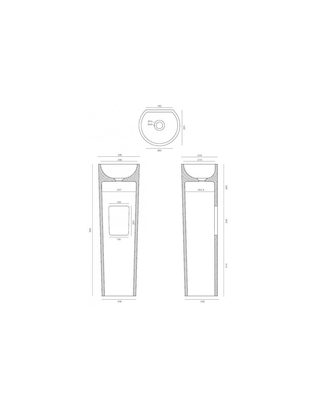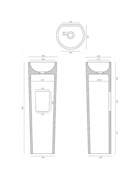 Håndvask fra Hollandske Ideavit, fremstillet i et råt design af beton. Håndvasken måler 90 cm i højden og 28 x 24,5 cm i bredde og dybde (top ydermål). Leveres med pop-up bundventil med cover i beton (samme farve som håndvasken). Håndvasken har nano-cover for ekstra beskyttelse.