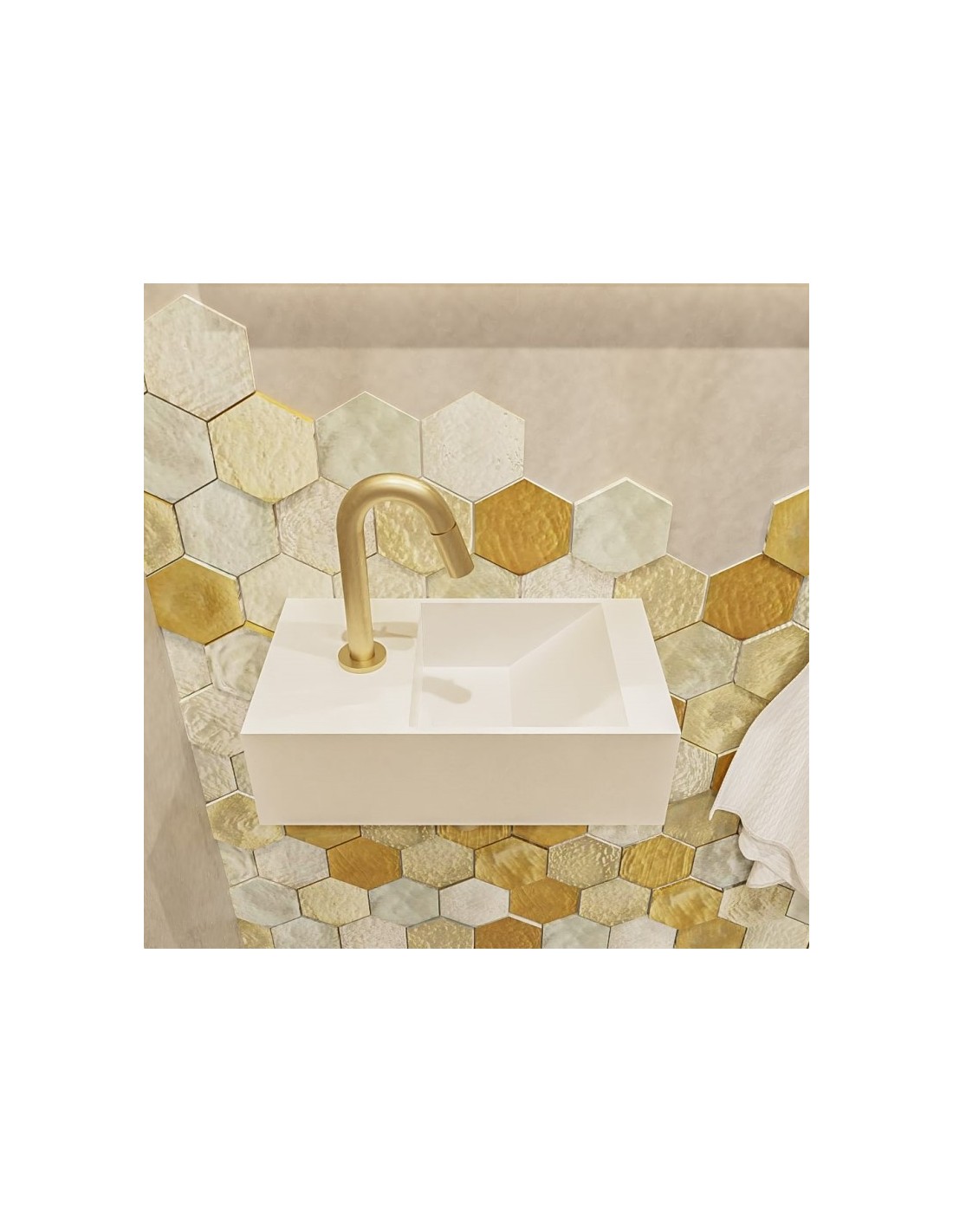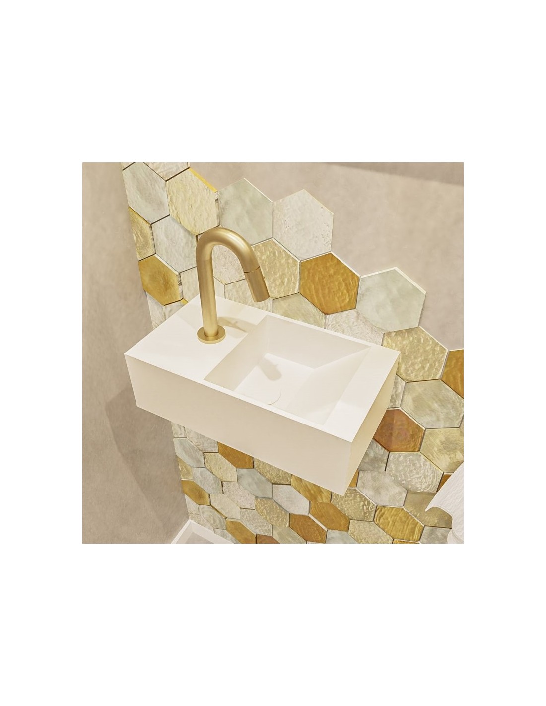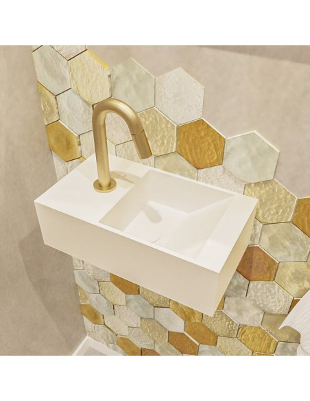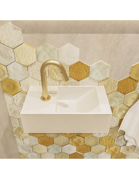 TYNE Væghængt højrevendt håndvask 40 x 23 cm Solid surface - Talkum