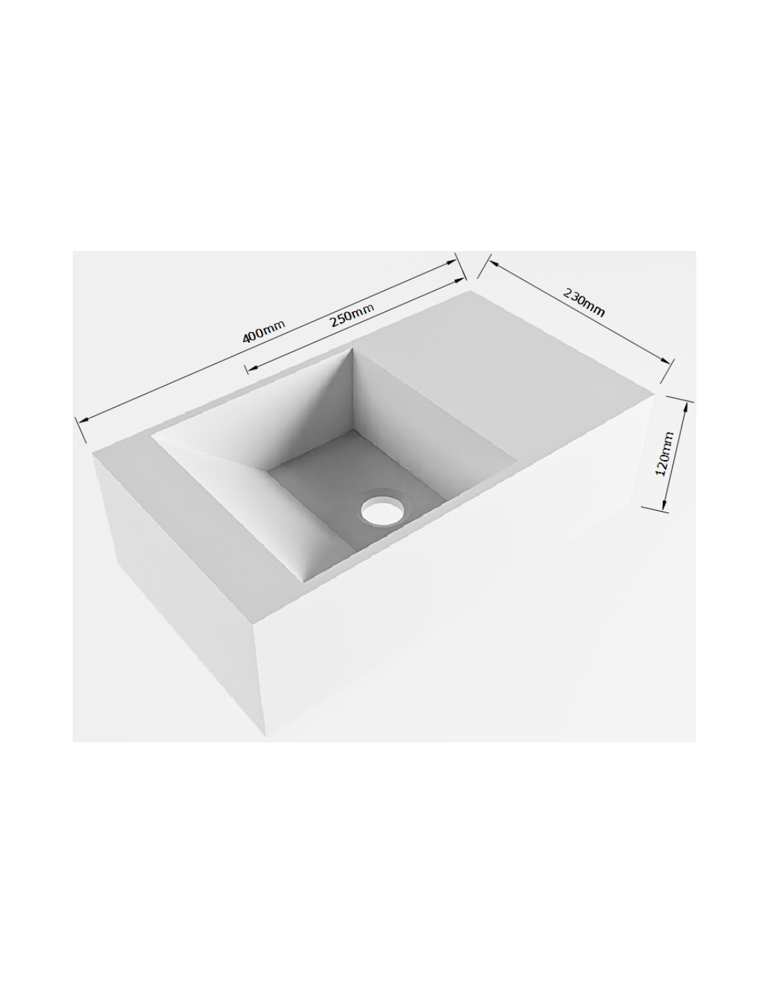 TYNE venstrevendt håndvask udført i et moderne og stilrent design i det solide materiale "Solid Surface", der ikke alene giver badeværelset et stilrent design, men samtidig er lækkert at røre ved. Håndvasken måler 12 cm i højden og 40 x 23 cm i bredde og dybde (ydermål). Håndvasken leveres uden pop-up bundventil (almindelige standard bundventiler kan anvendes).