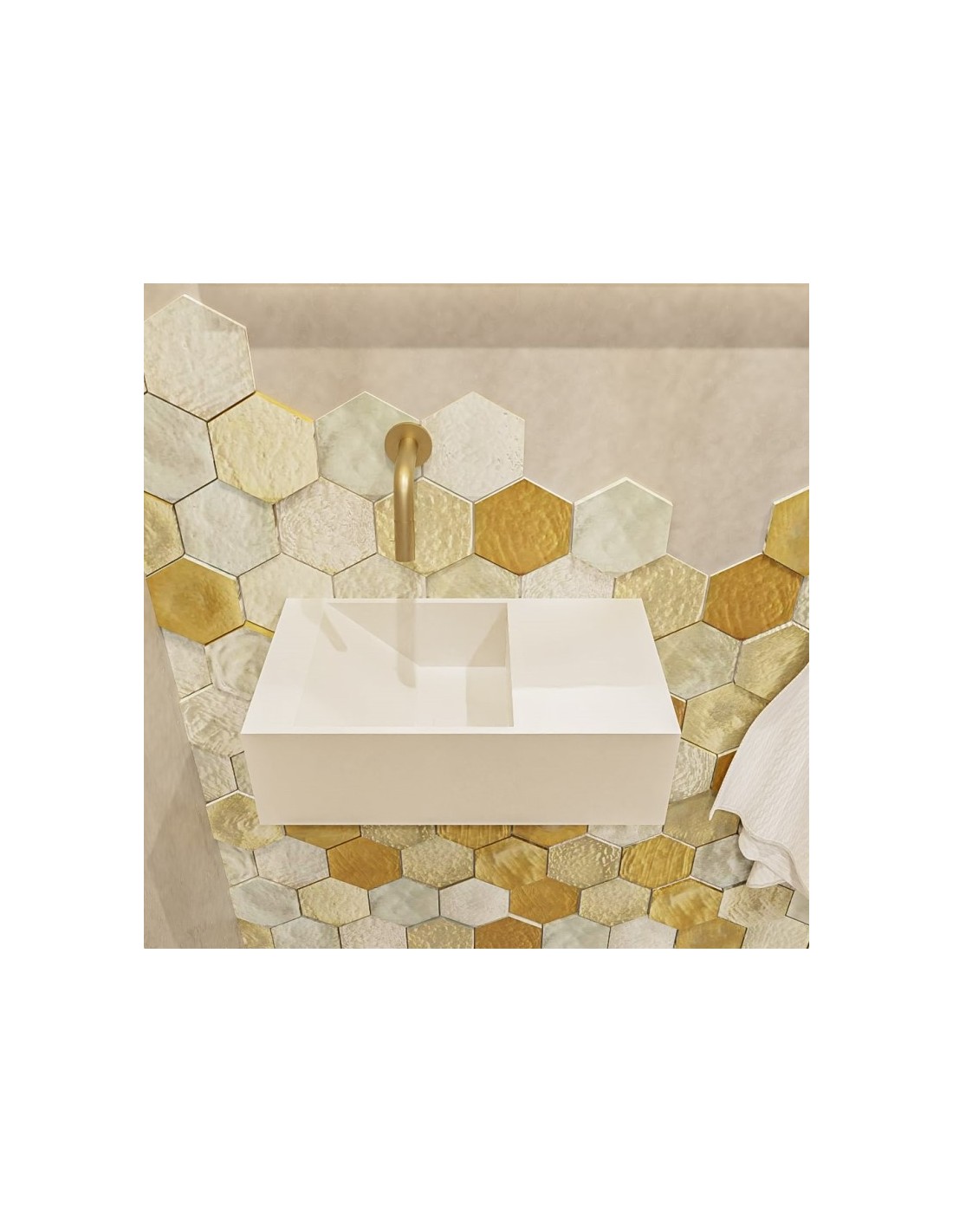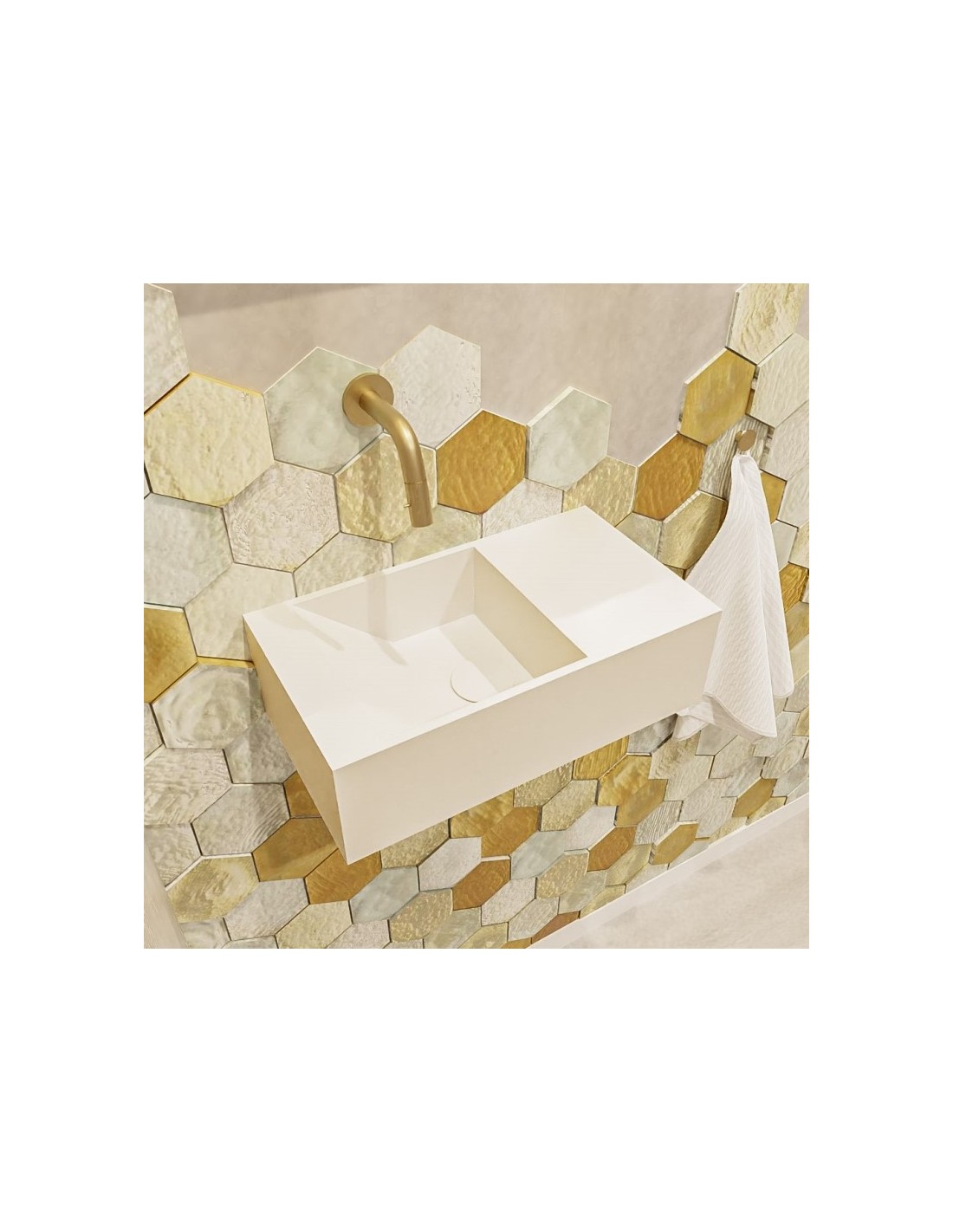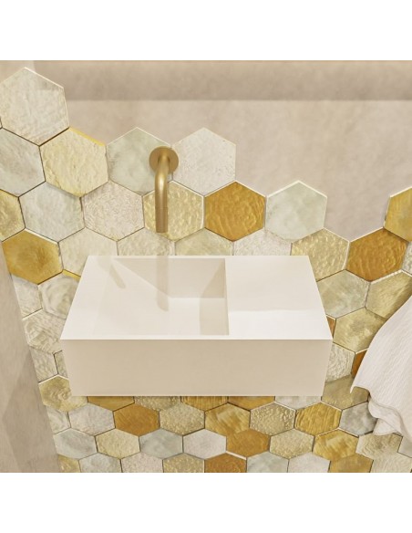 TYNE Væghængt venstrevendt håndvask 40 x 23 cm Solid surface - Talkum