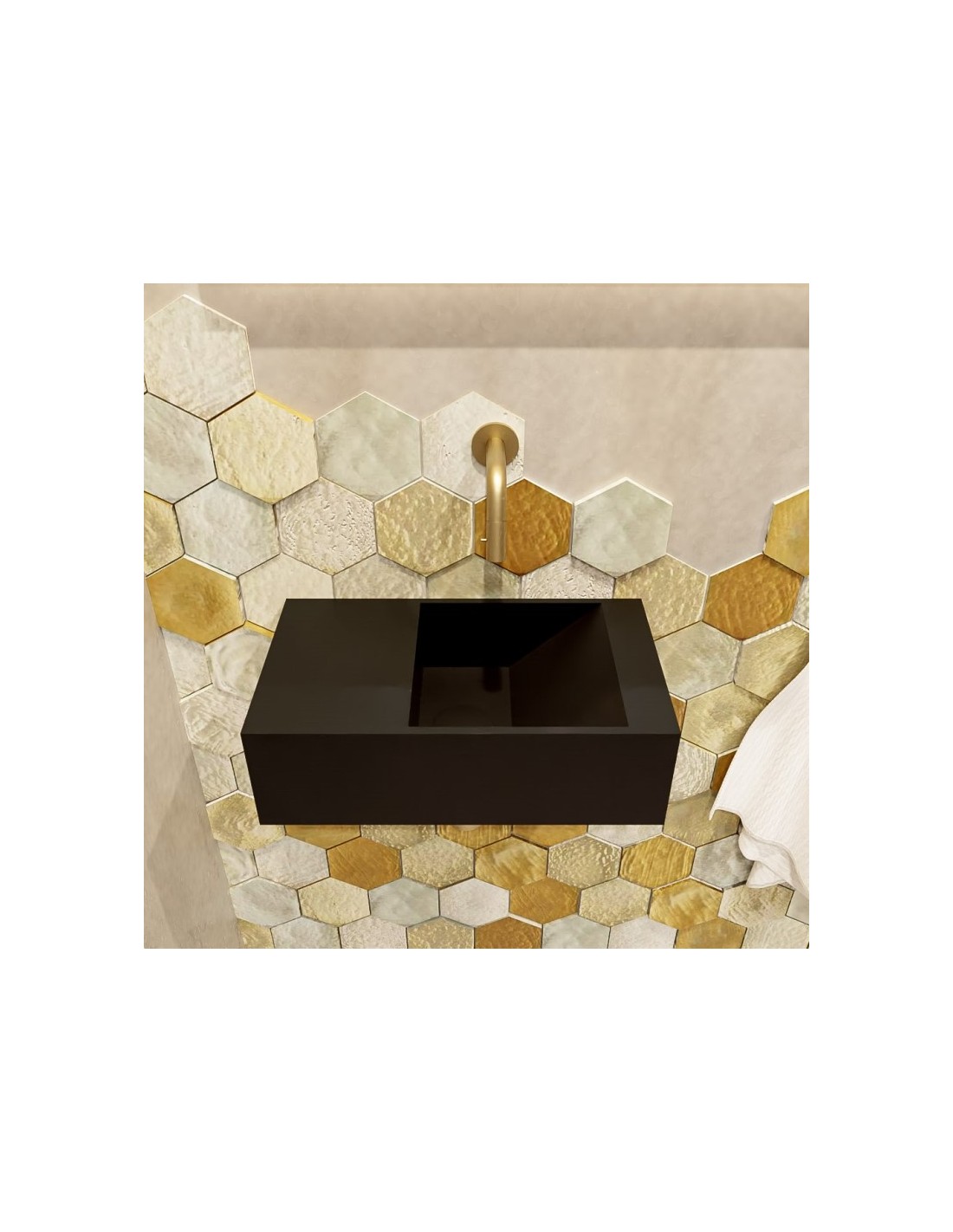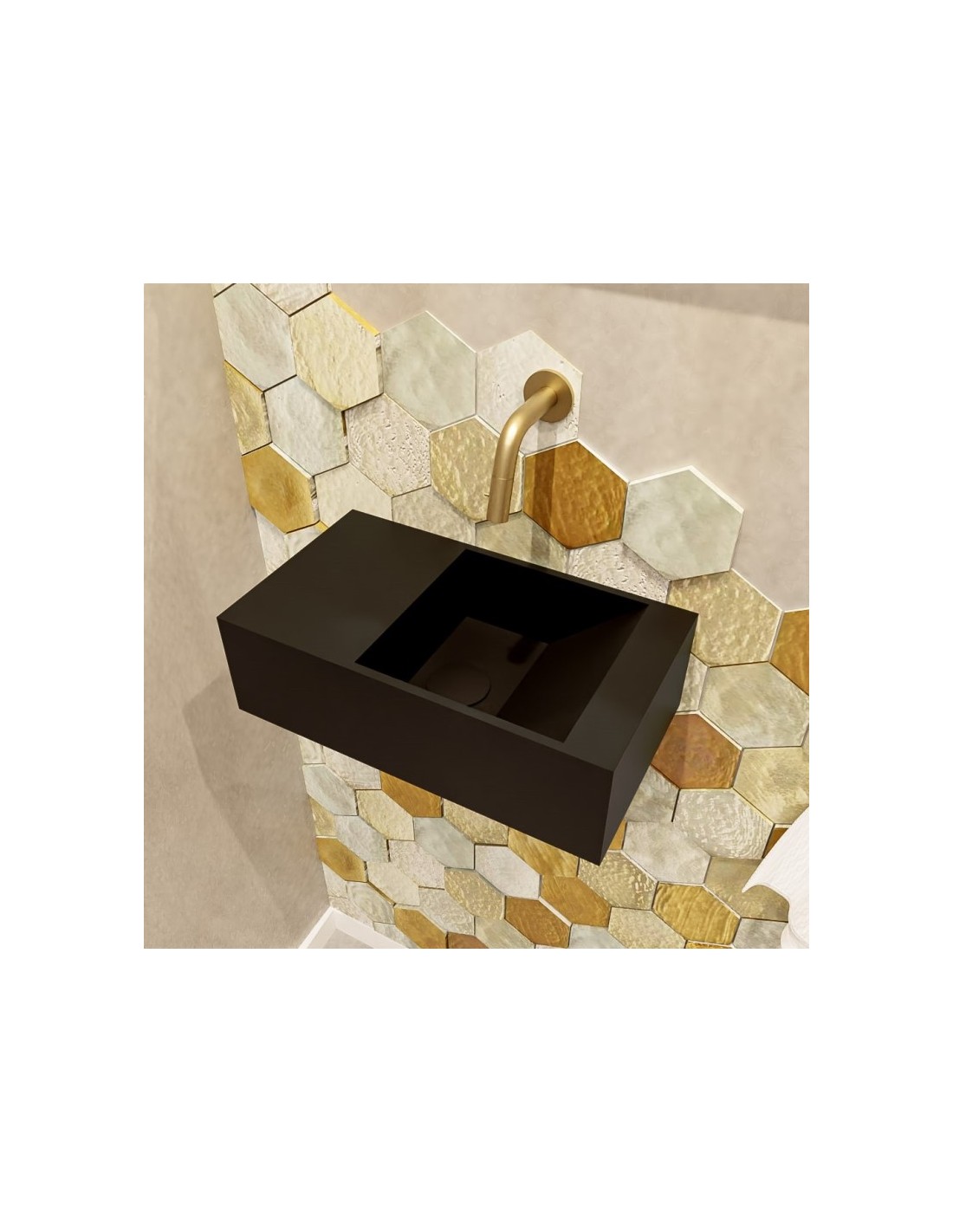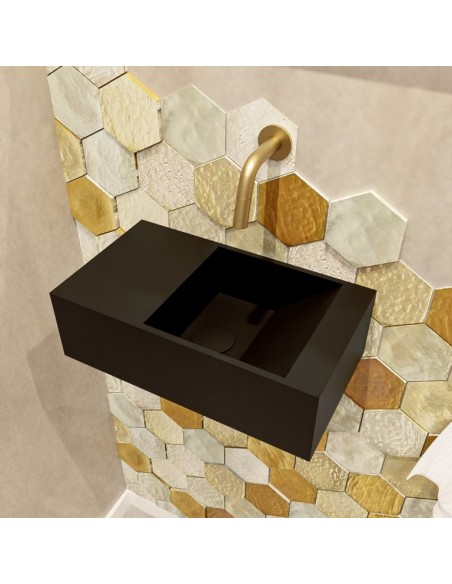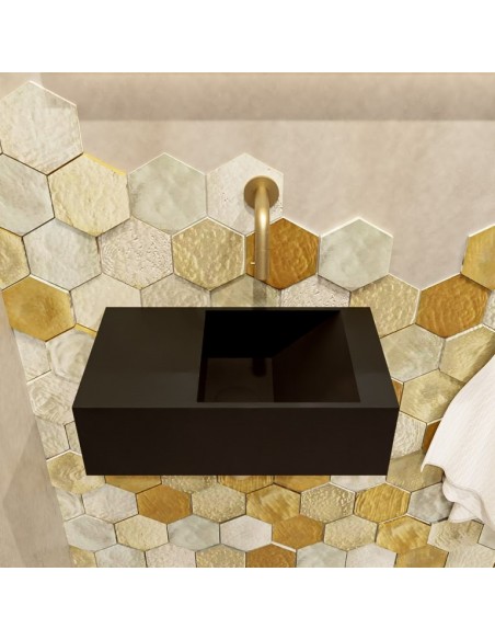 TYNE Væghængt højrevendt håndvask 40 x 23 cm Solid surface - Sort