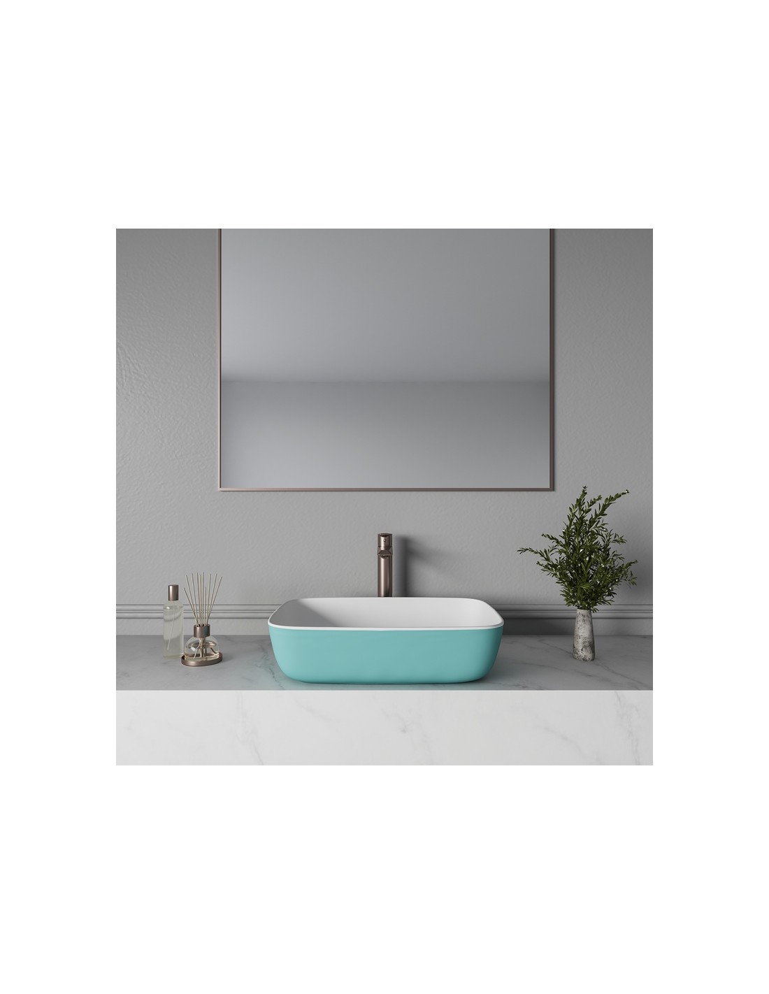 MORETTI bordmonteret håndvask 54 x 38 cm solid surface - Turkis/Satineret mat hvid