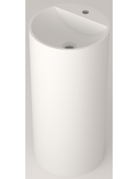 Fritstående håndvask fra Spanske ICÓNICO, udført i et design fremstillet i det solide materiale "Solid Surface", der ikke alene giver badeværelset et stilrent design, men samtidig er lækkert at røre ved. Håndvasken måler 86 cm i højden og 40 cm i diameter (ydermål). Leveres med bundventil. Bemærk venligst, at der kun er 1 forboret hul til armatur (ikke 2 som vist på mørkegråt billede).