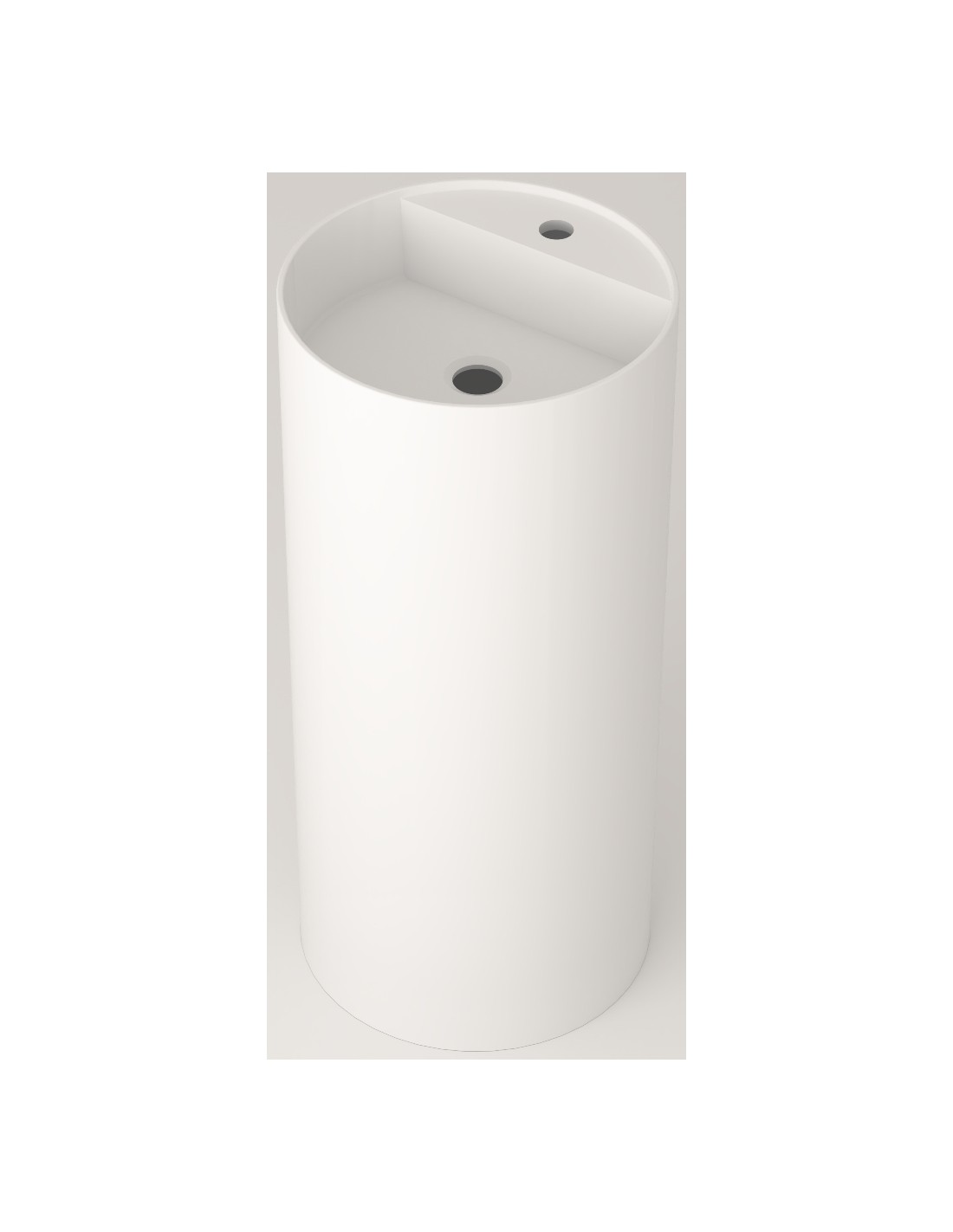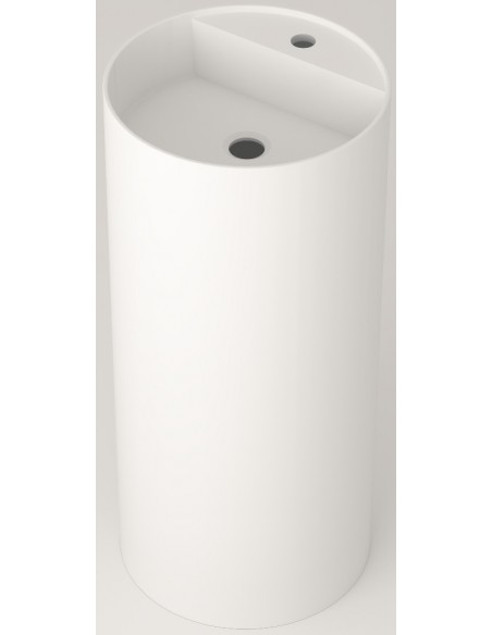 Fritstående håndvask fra Spanske ICÓNICO, udført i et design fremstillet i det solide materiale "Solid Surface", der ikke alene giver badeværelset et stilrent design, men samtidig er lækkert at røre ved. Håndvasken måler 86 cm i højden og 39 cm i diameter (ydermål). Leveres med bundventil. Bemærk venligst, at der kun er 1 forboret hul til armatur (ikke 2 som vist på billedet).