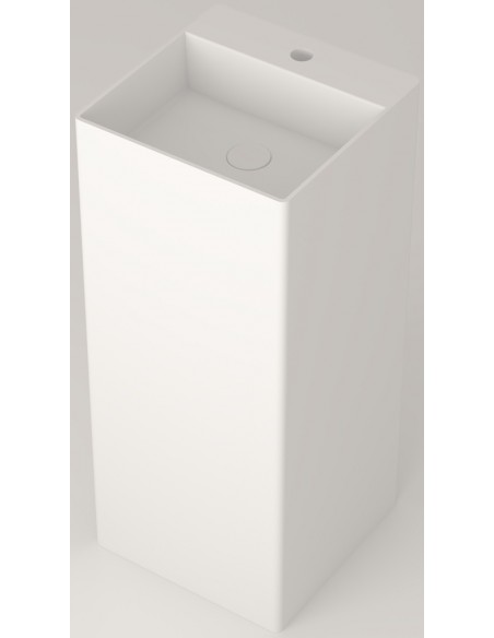 Fritstående håndvask fra Spanske ICÓNICO, udført i et design fremstillet i det solide materiale "Solid Surface", der ikke alene giver badeværelset et stilrent design, men samtidig er lækkert at røre ved. Håndvasken måler 86 cm i højden og 45 cm i bredde og dybde (ydermål). Leveres med bundventil. Bemærk venligst, at der kun er 1 forboret hul til armatur (ikke 2 som vist på billedet).