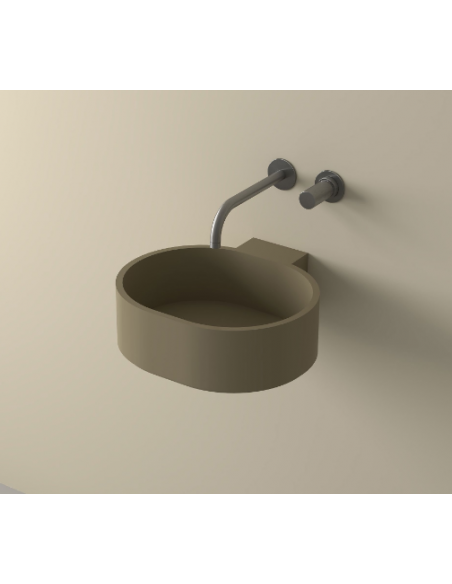 LO1S-M vægmonteret håndvask 37 x 36,4 cm solid surface - Gråbrun