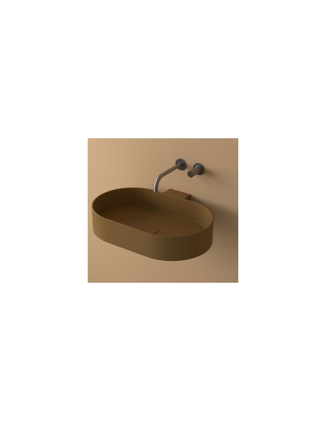 LO1M-M vægmonteret håndvask 60 x 44,4 cm solid surface - Brun