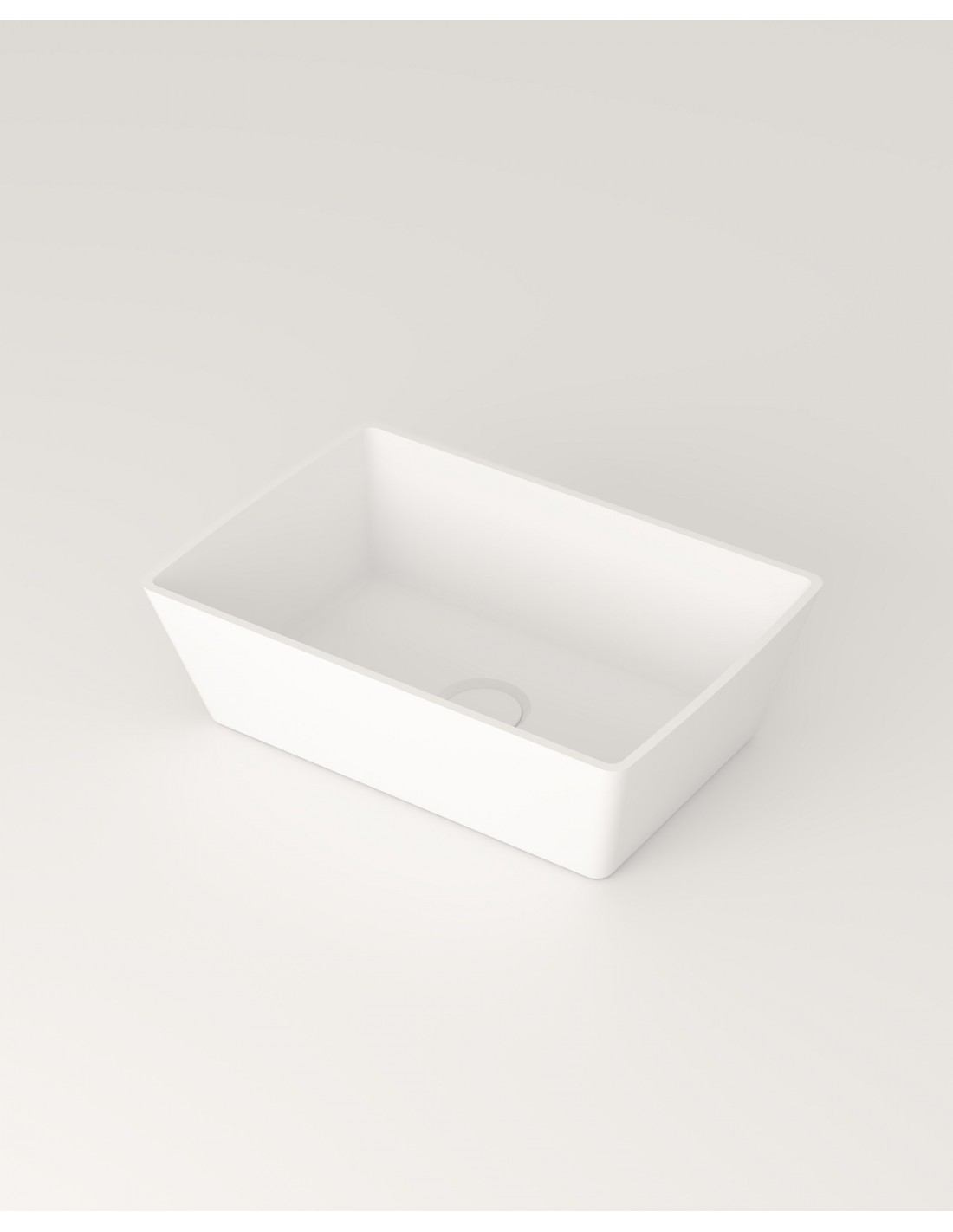 Bordmonteret håndvask fra Spanske ICÓNICO, udført i et design fremstillet i det solide materiale "Solid Surface", der ikke alene giver badeværelset et stilrent design, men samtidig er lækkert at røre ved. Håndvasken måler 12 cm i højden og 45,6 x 31,2 cm i bredde og dybde (ydermål). Leveres med bundventil.