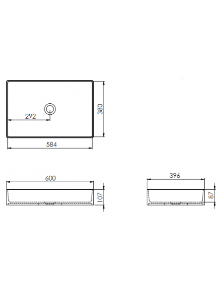LC1M bordmonteret håndvask 60 x 39,6 cm solid surface - Mat hvid