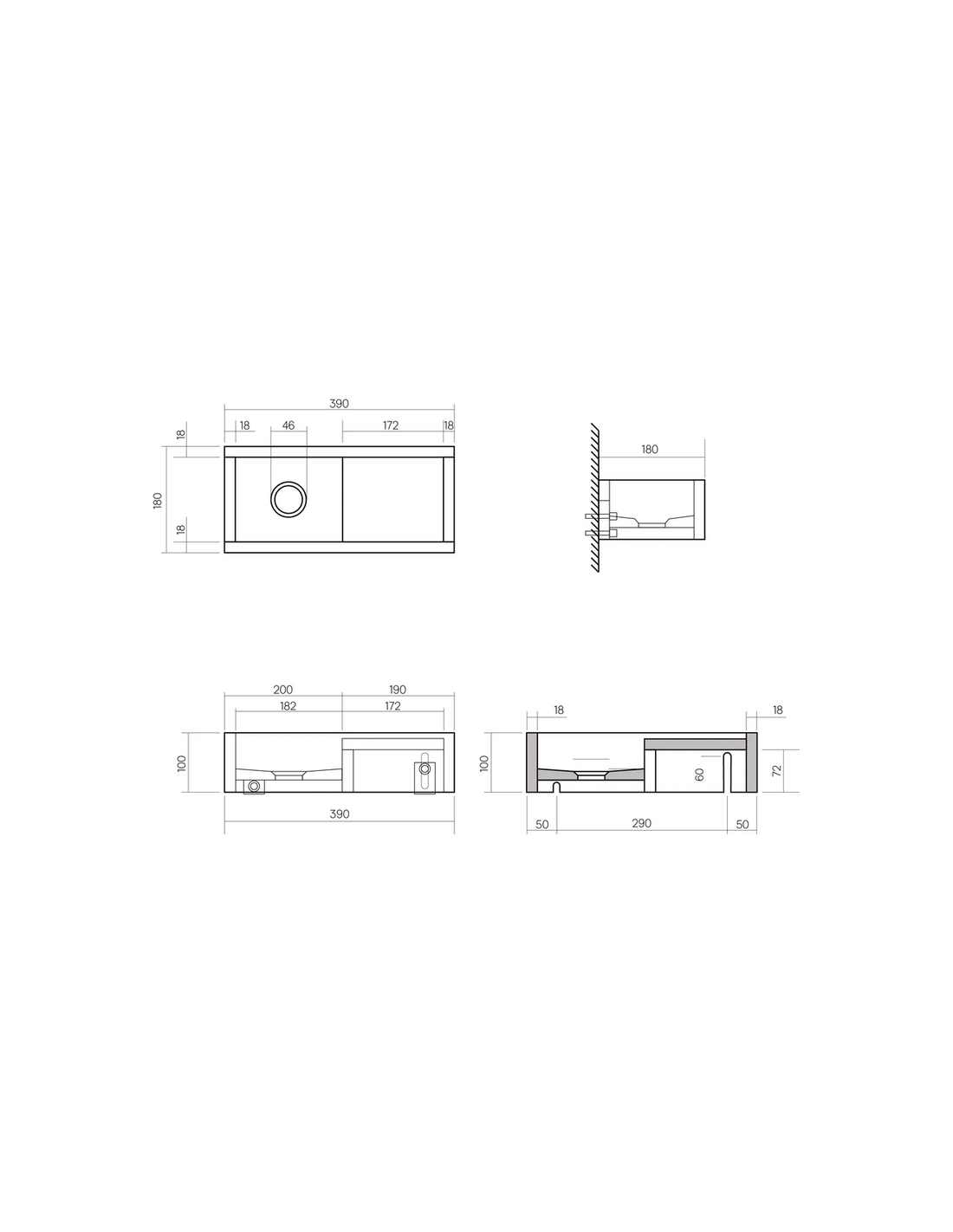 Vægmonteret håndvask udført i et design af hvid marmor. Håndvasken måler 10 cm i højden og 39 x 18 cm i bredde og dybde (ydermål). Vasken leveres uden bundventil (standard mål). Bemærk venligst, at da der er tale om et naturmateriale, så vil 2 håndvaske ikke være helt ens i strukturen. Hertil kán der være en mindre variation i nuancen i forhold til de viste produktbilleder.