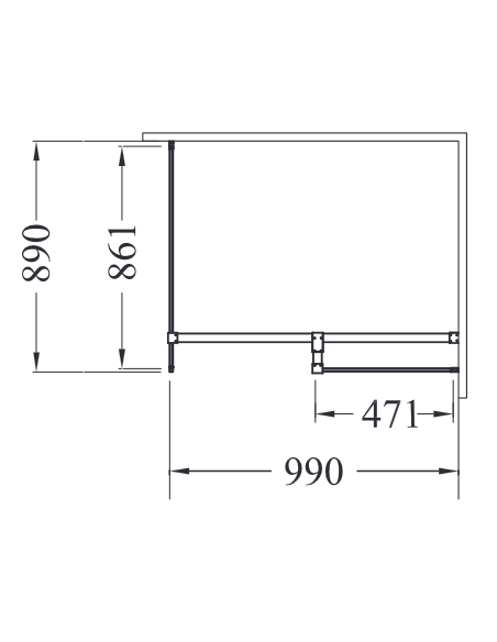 EXCEA bruseafskærmning udført i mat sortlakeret metal og med klart sikkerhedsglas. Bruseafskærmningen kan spejlvendes og måler 100 x 90 cm i bredde og dybde, og 190 cm i højden (ydermål).