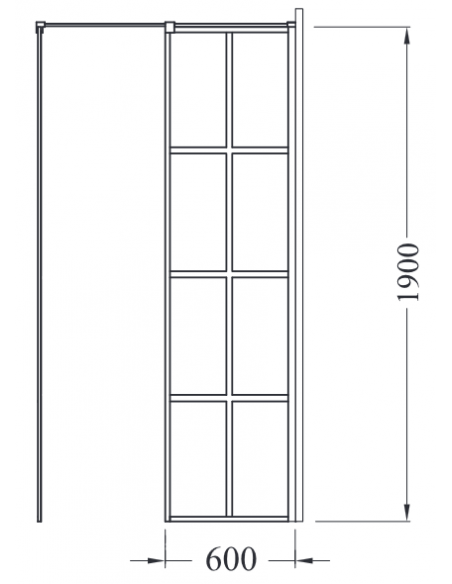 EXCEA bruseafskærmning udført i mat sortlakeret metal og med klart sikkerhedsglas. Bruseafskærmningen kan spejlvendes og måler 120 x 80 cm i bredde og dybde, og 190 cm i højden (ydermål).