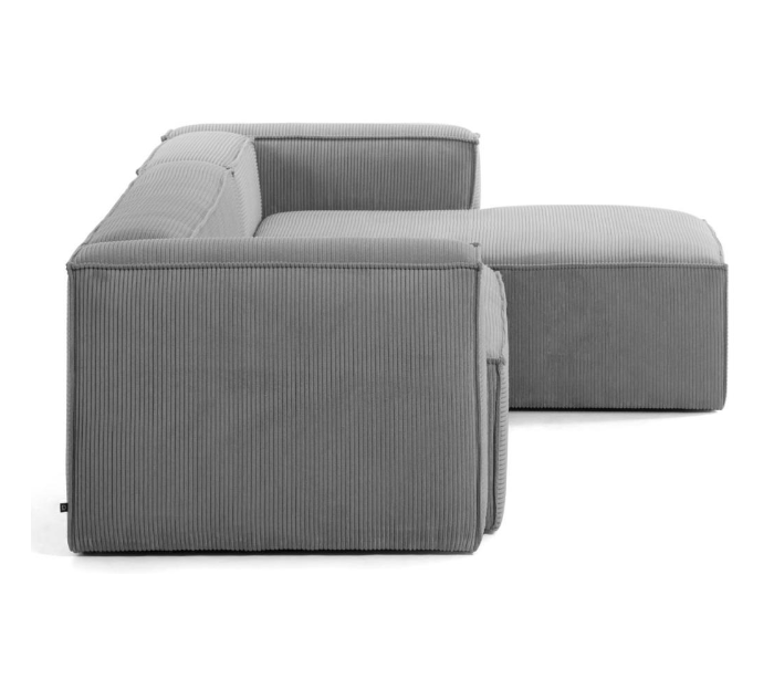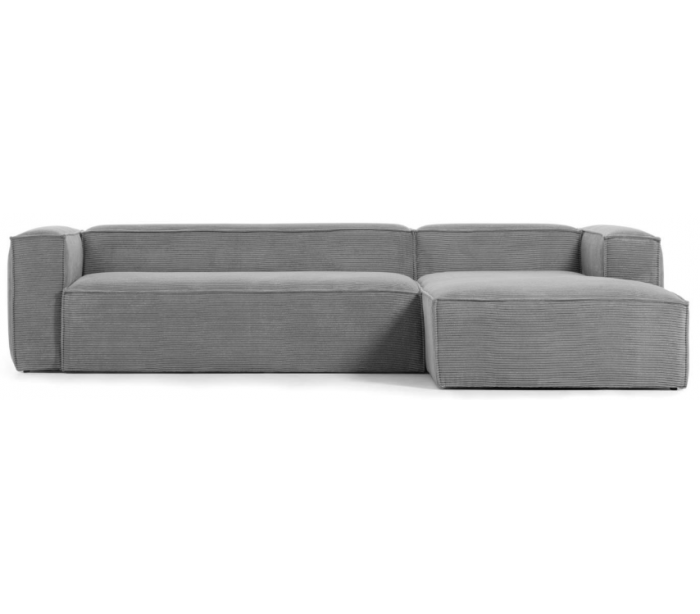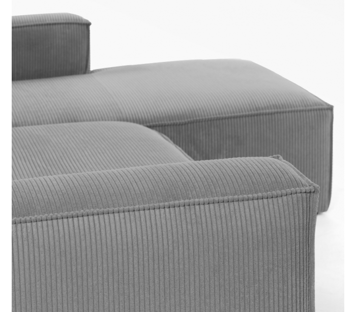 Chaiselong sofa udført i et moderne skandinavisk design fra LaForma. Sofaen er fremstillet i grå ripcurl velour og måler 330 x 174 cm i bredde og dybde - denne model er højrevendt. Modulerne forbindes til hinanden via klammer.