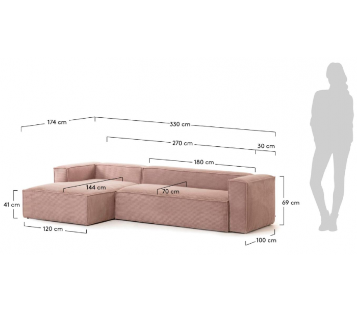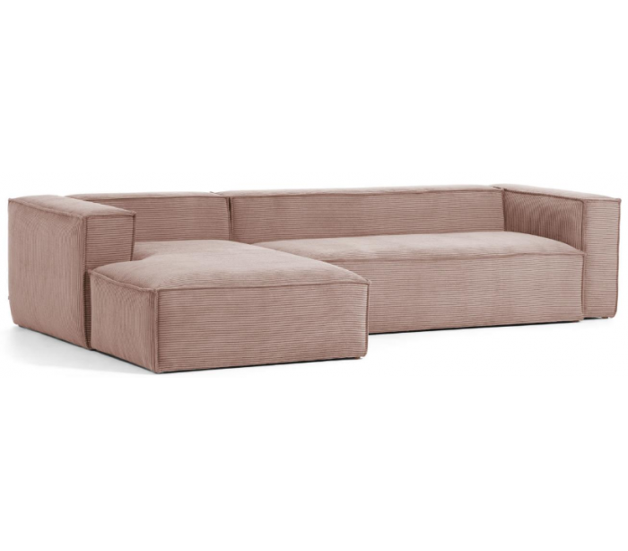 Chaiselong sofa udført i et moderne skandinavisk design fra LaForma. Sofaen er fremstillet i pink ripcurl velour og måler 330 x 174 cm i bredde og dybde - denne model er venstrevendt. Modulerne forbindes til hinanden via klammer.