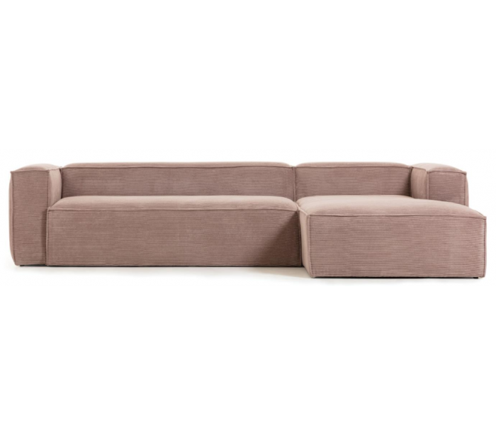 Chaiselong sofa udført i et moderne skandinavisk design fra LaForma. Sofaen er fremstillet i pink ripcurl velour og måler 330 x 174 cm i bredde og dybde - denne model er højrevendt. Modulerne forbindes til hinanden via klammer.