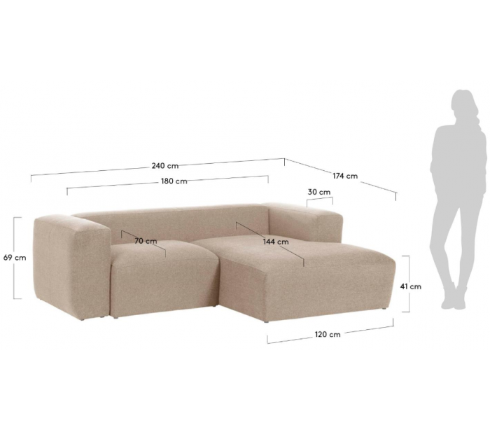 Chaiselong sofa udført i et moderne skandinavisk design fra LaForma. Sofaen er fremstillet i beige polyester og akrylfibre og måler 240 x 174 cm i bredde og dybde - denne model er højrevendt. Modulerne forbindes til hinanden via klammer.