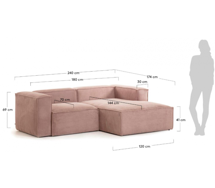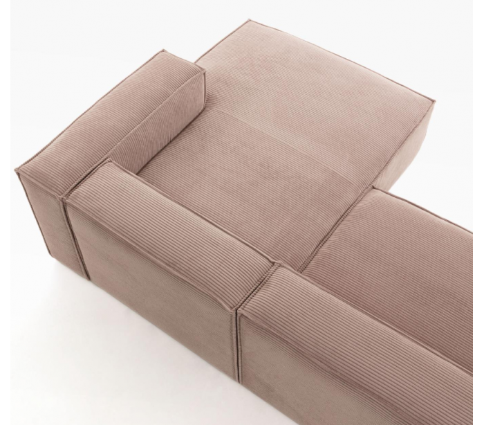 Chaiselong sofa udført i et moderne skandinavisk design fra LaForma. Sofaen er fremstillet i pink ripcurl velour og måler 240 x 174 cm i bredde og dybde - denne model er højrevendt. Modulerne forbindes til hinanden via klammer.