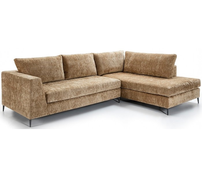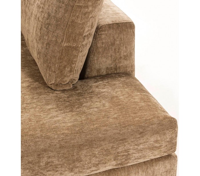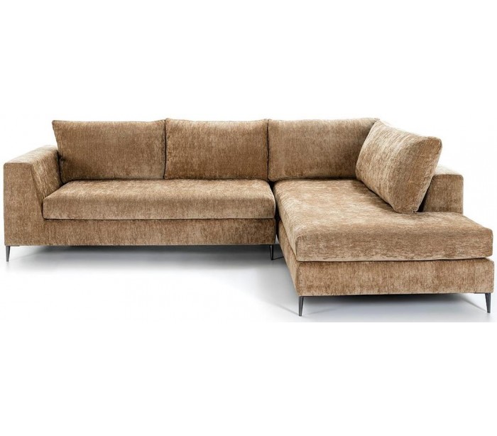 Chaiselong sofa udført i et design i brun tekstil (60% Akryl/40% Linned) og med ben i sortlakeret metal. Sofaen måler 300 x 210 cm i bredde og dybde og 90 cm i højden. Chaiselongen er højrevendt.