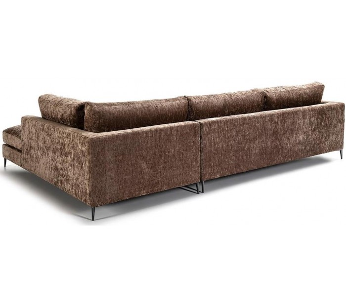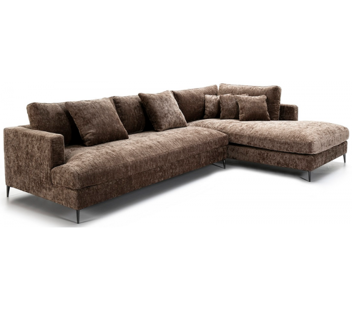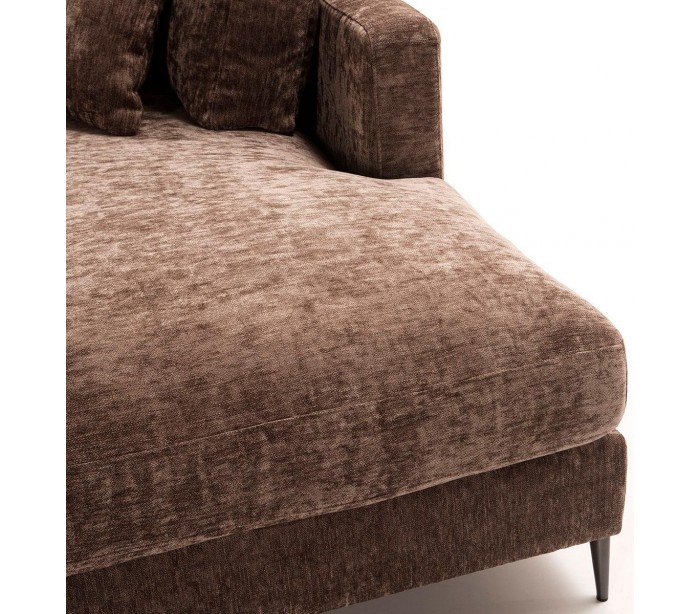 Chaiselong sofa udført i et design i mørkebrun tekstil (60% Akryl/40% Linned) og med ben i sortlakeret metal. Sofaen måler 326 x 215 cm i bredde og dybde og 87 cm i højden. Chaiselongen er højrevendt.