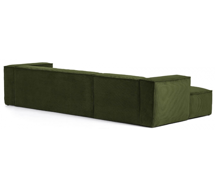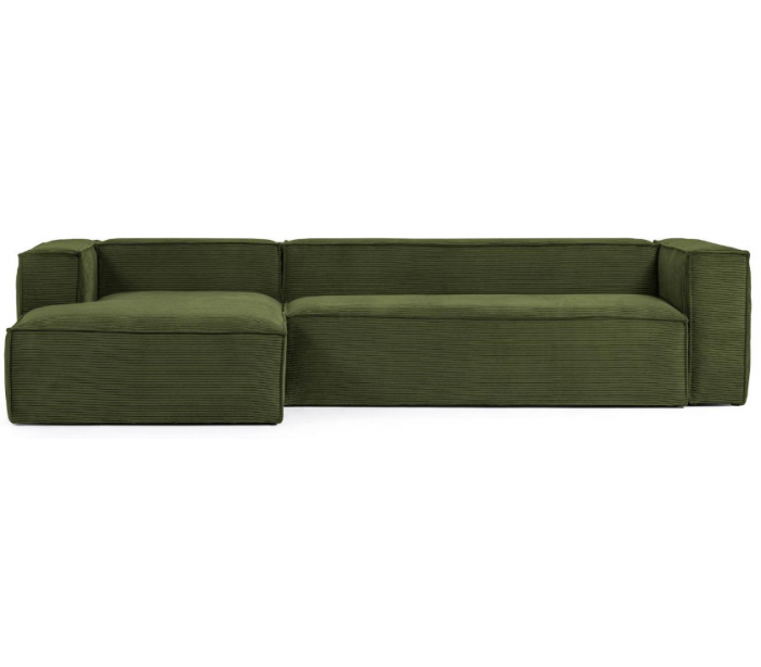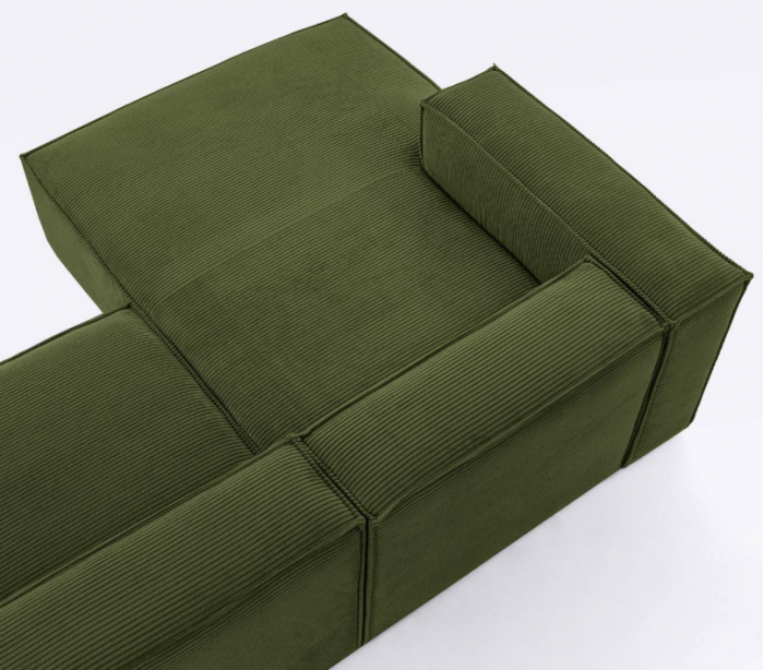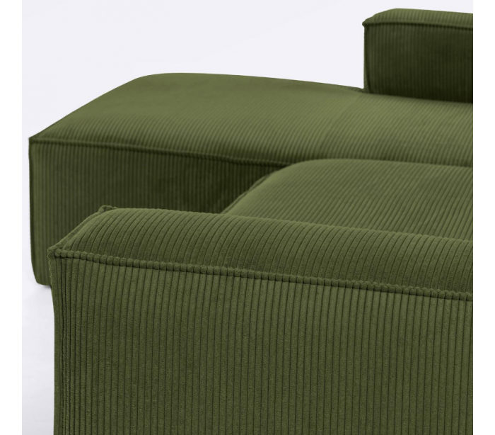 Chaiselong sofa udført i et moderne skandinavisk design fra LaForma. Sofaen er fremstillet i grønt ripcurl velour og måler 330 x 174 cm i bredde og dybde - denne model er venstrevendt. Modulerne forbindes til hinanden via klammer.