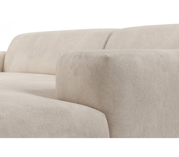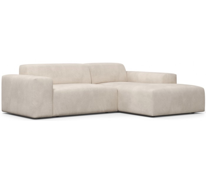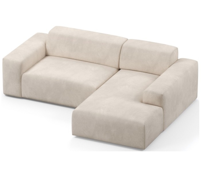 Moderne højrevendt chaiselong sofa i et design fremstillet i beige velour. Sofaen måler 250 x 185 cm i bredde og dybde og 71 cm i højden over ryggen. Sofaen er polstret med højkvalitets skum. En lækker slængesofa med dyb siddestilling.