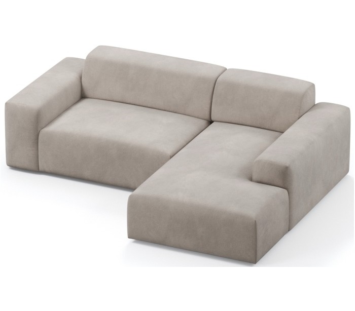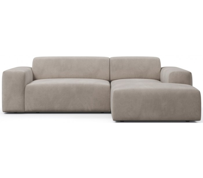 Moderne højrevendt chaiselong sofa i et design fremstillet i taupe velour. Sofaen måler 250 x 185 cm i bredde og dybde og 71 cm i højden over ryggen. Sofaen er polstret med højkvalitets skum. En lækker slængesofa med dyb siddestilling.