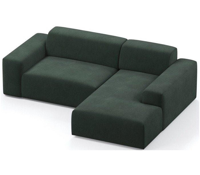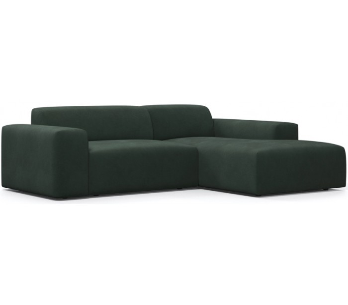 Moderne højrevendt chaiselong sofa i et design fremstillet i mørkegrøn velour. Sofaen måler 250 x 185 cm i bredde og dybde og 71 cm i højden over ryggen. Sofaen er polstret med højkvalitets skum. En lækker slængesofa med dyb siddestilling.