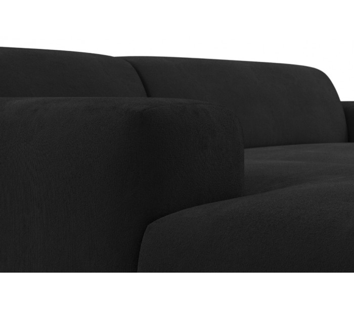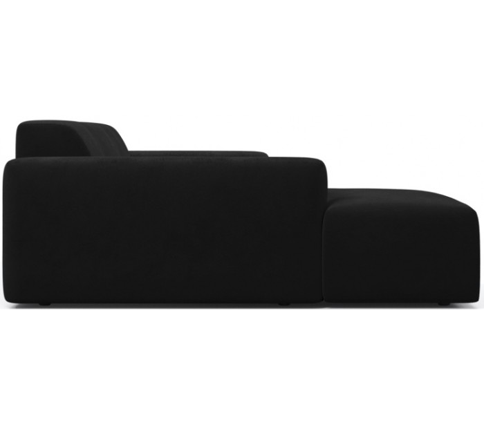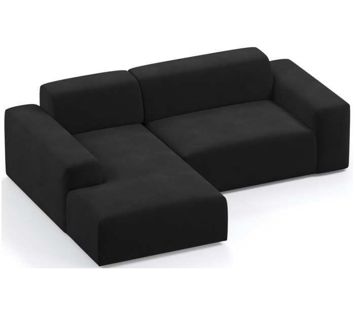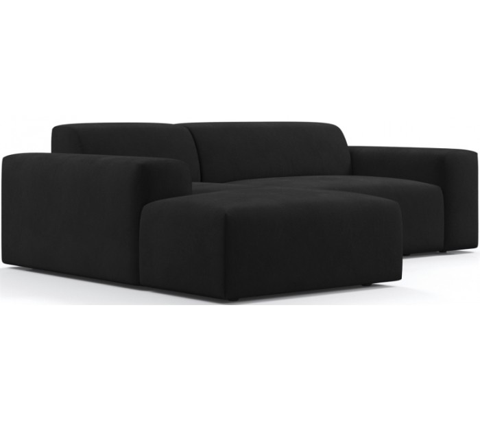 Moderne venstrevendt chaiselong sofa i et design fremstillet i sort velour. Sofaen måler 250 x 185 cm i bredde og dybde og 71 cm i højden over ryggen. Sofaen er polstret med højkvalitets skum. En lækker slængesofa med dyb siddestilling.