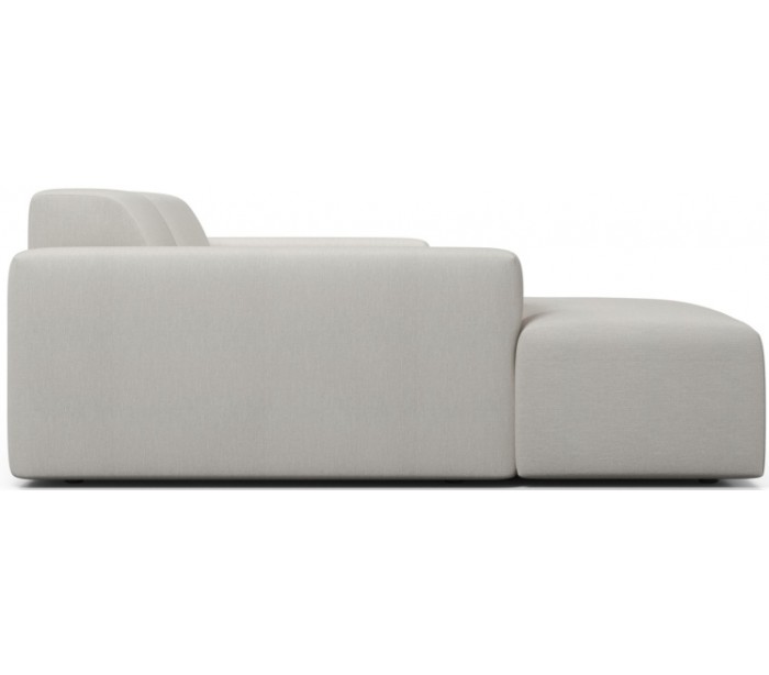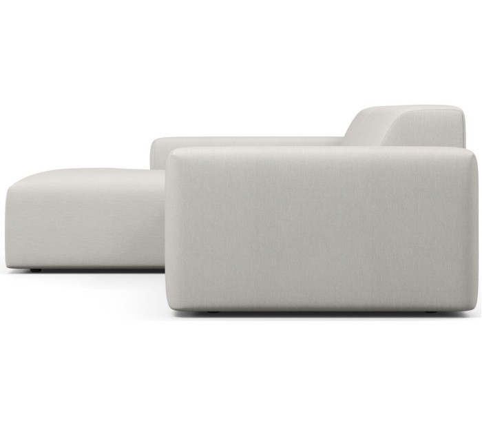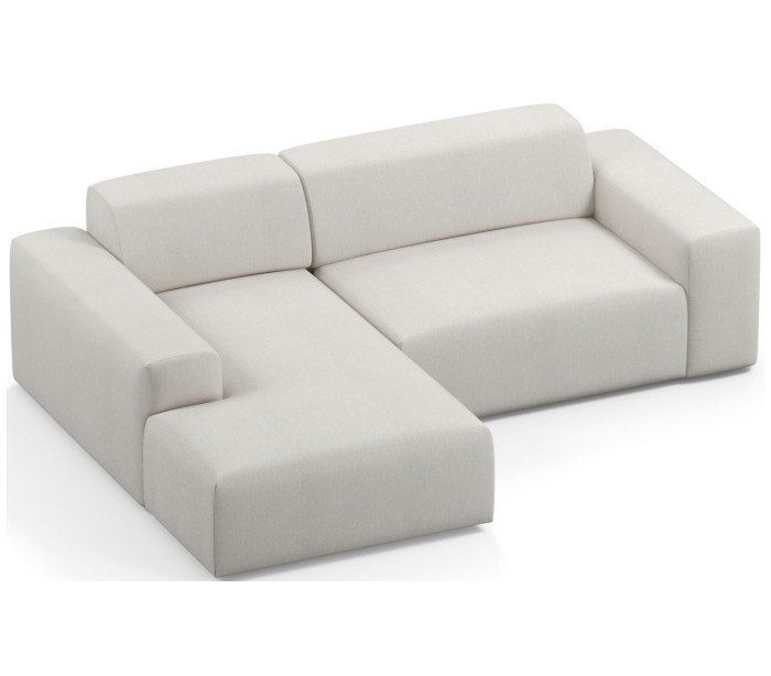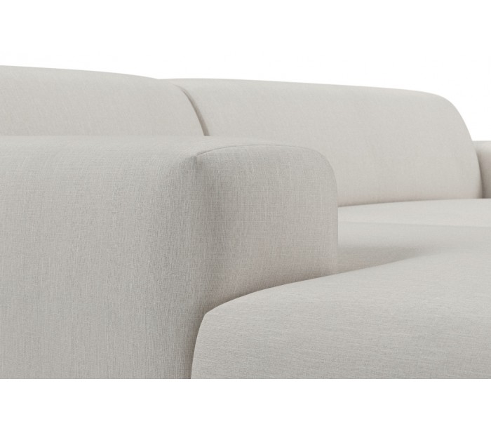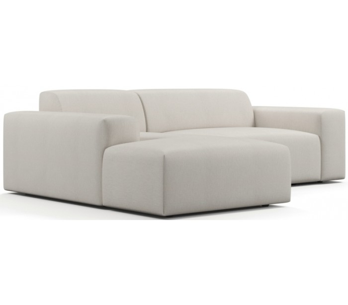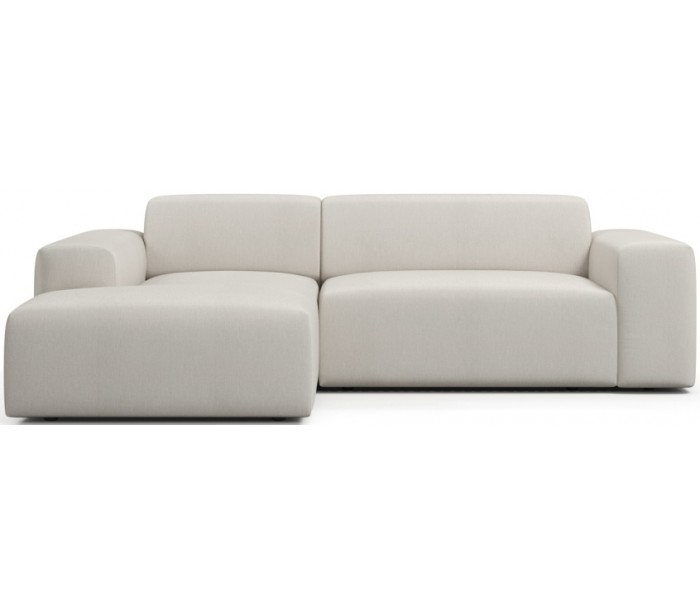 Moderne venstrevendt chaiselong sofa i et design fremstillet i creme polyester. Sofaen måler 250 x 185 cm i bredde og dybde og 71 cm i højden over ryggen. Sofaen er polstret med højkvalitets skum. En lækker slængesofa med dyb siddestilling.