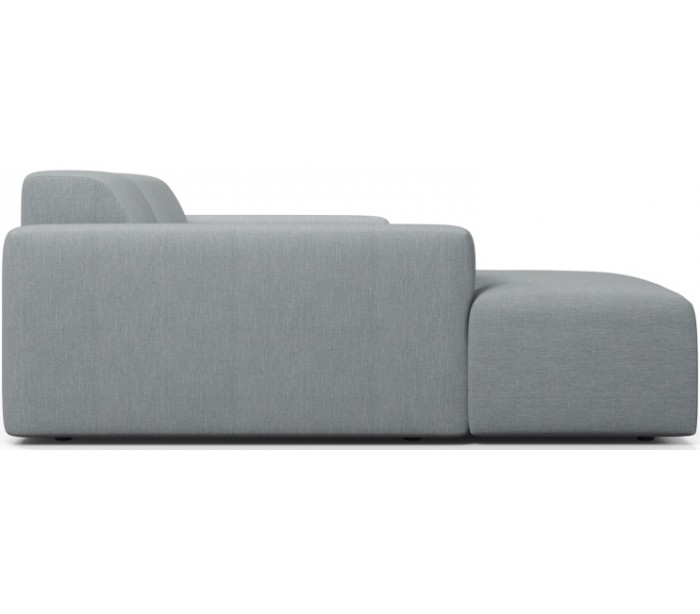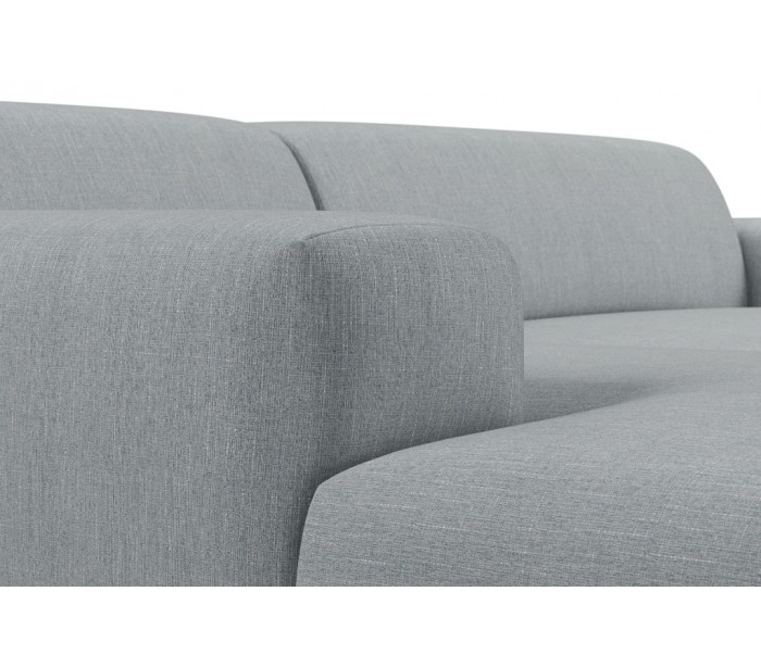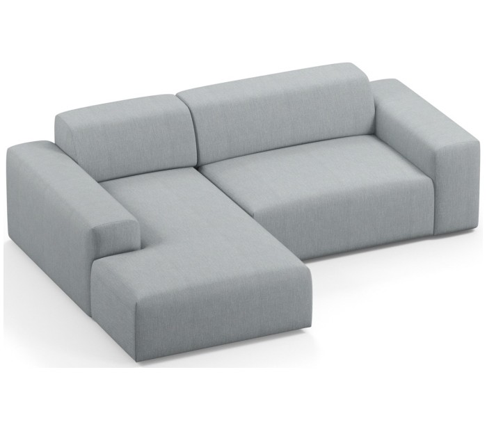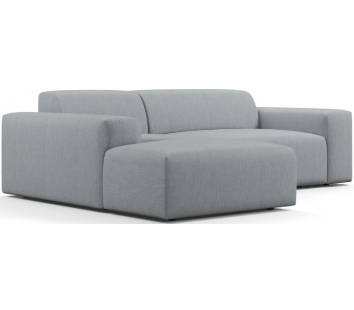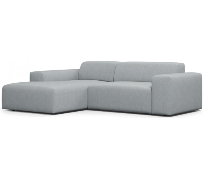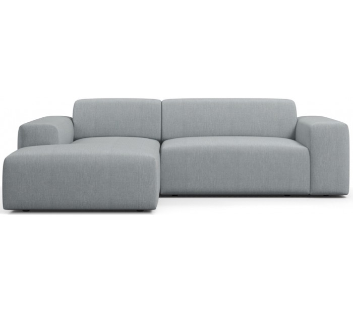 Moderne venstrevendt chaiselong sofa i et design fremstillet i grågrøn polyester. Sofaen måler 250 x 185 cm i bredde og dybde og 71 cm i højden over ryggen. Sofaen er polstret med højkvalitets skum. En lækker slængesofa med dyb siddestilling.