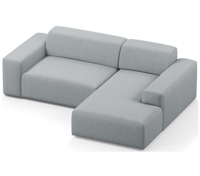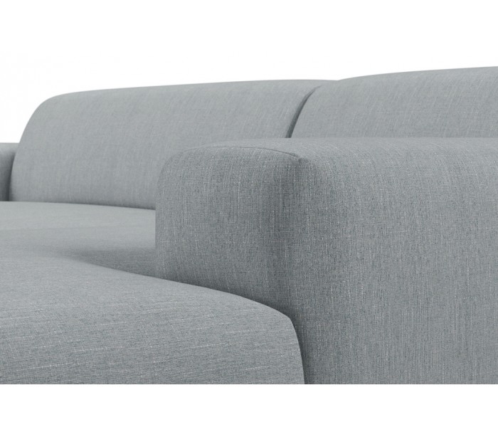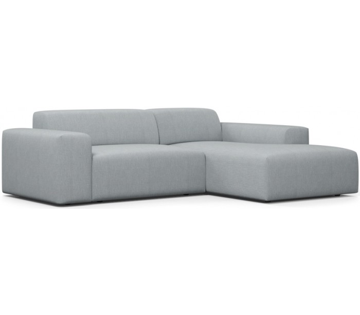 Moderne højrevendt chaiselong sofa i et design fremstillet i grågrøn polyester. Sofaen måler 250 x 185 cm i bredde og dybde og 71 cm i højden over ryggen. Sofaen er polstret med højkvalitets skum. En lækker slængesofa med dyb siddestilling.