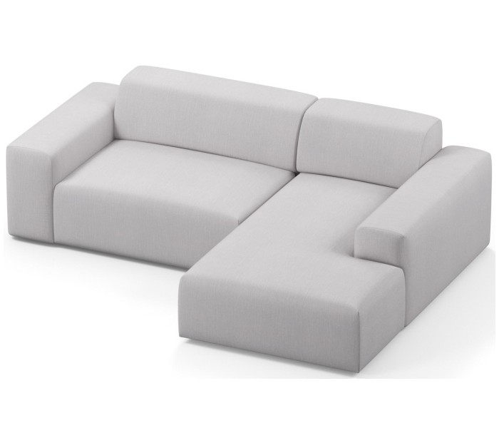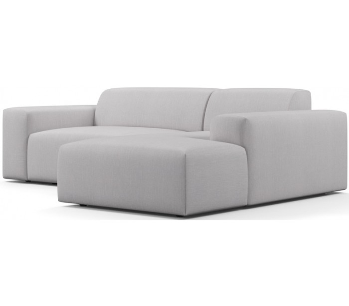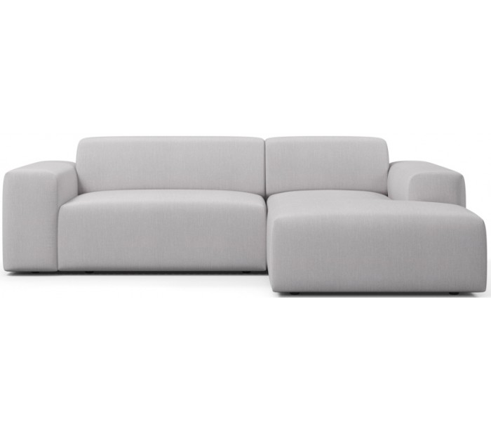 Moderne højrevendt chaiselong sofa i et design fremstillet i lysegrå polyester. Sofaen måler 250 x 185 cm i bredde og dybde og 71 cm i højden over ryggen. Sofaen er polstret med højkvalitets skum. En lækker slængesofa med dyb siddestilling.