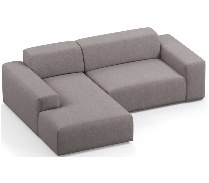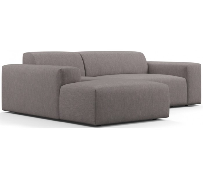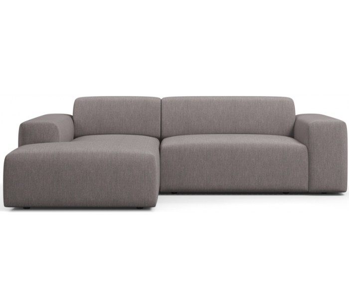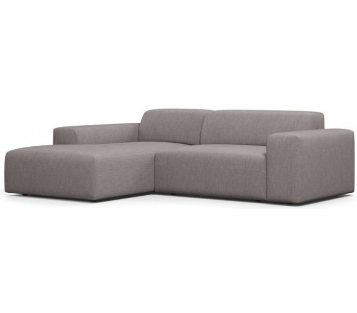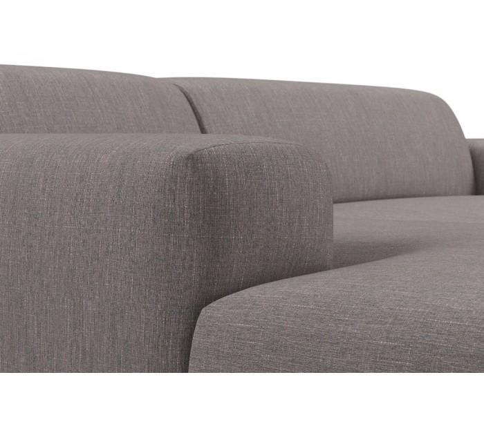 Moderne venstrevendt chaiselong sofa i et design fremstillet i grå polyester. Sofaen måler 250 x 185 cm i bredde og dybde og 71 cm i højden over ryggen. Sofaen er polstret med højkvalitets skum. En lækker slængesofa med dyb siddestilling.