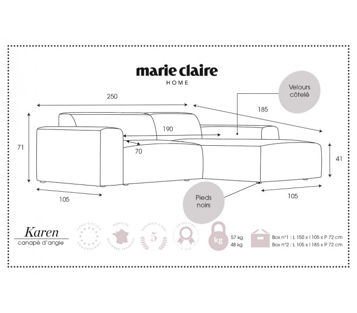 Karen højrevendt chaiselong sofa i polyester 250 x 185 cm - Grå