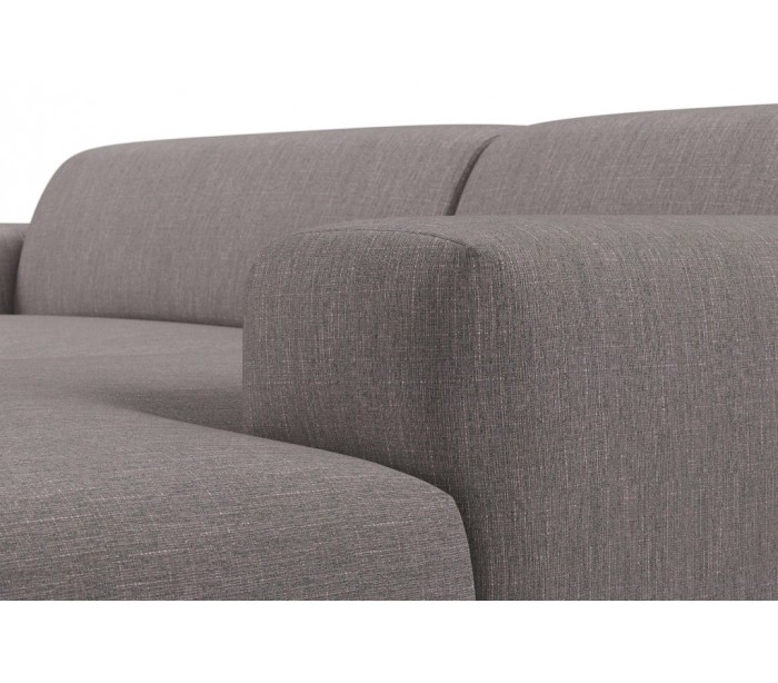 Moderne højrevendt chaiselong sofa i et design fremstillet i grå polyester. Sofaen måler 250 x 185 cm i bredde og dybde og 71 cm i højden over ryggen. Sofaen er polstret med højkvalitets skum. En lækker slængesofa med dyb siddestilling.